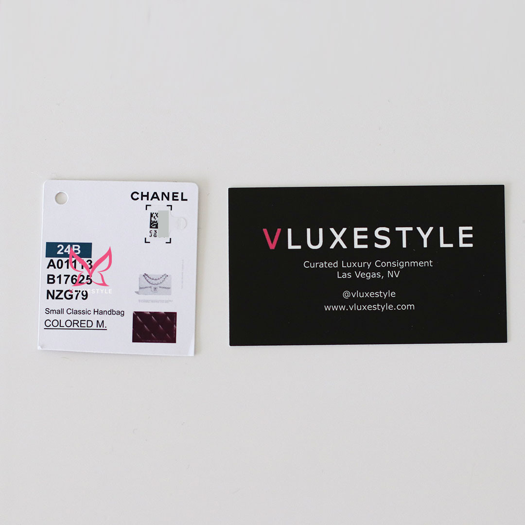 Perfect for any occasion, this versatile bag can be worn long or short over your shoulder. This classic bag transitions effortlessly from day to night, complementing any ensemble with its sophisticated flair. The versatile chain strap allows for effortless wear, either long across the body or short over the shoulder. This authentic Classic Small Flap 24B Burgundy is a rare and exquisite addition to your luxury collection, a testament to timeless style and sophistication.