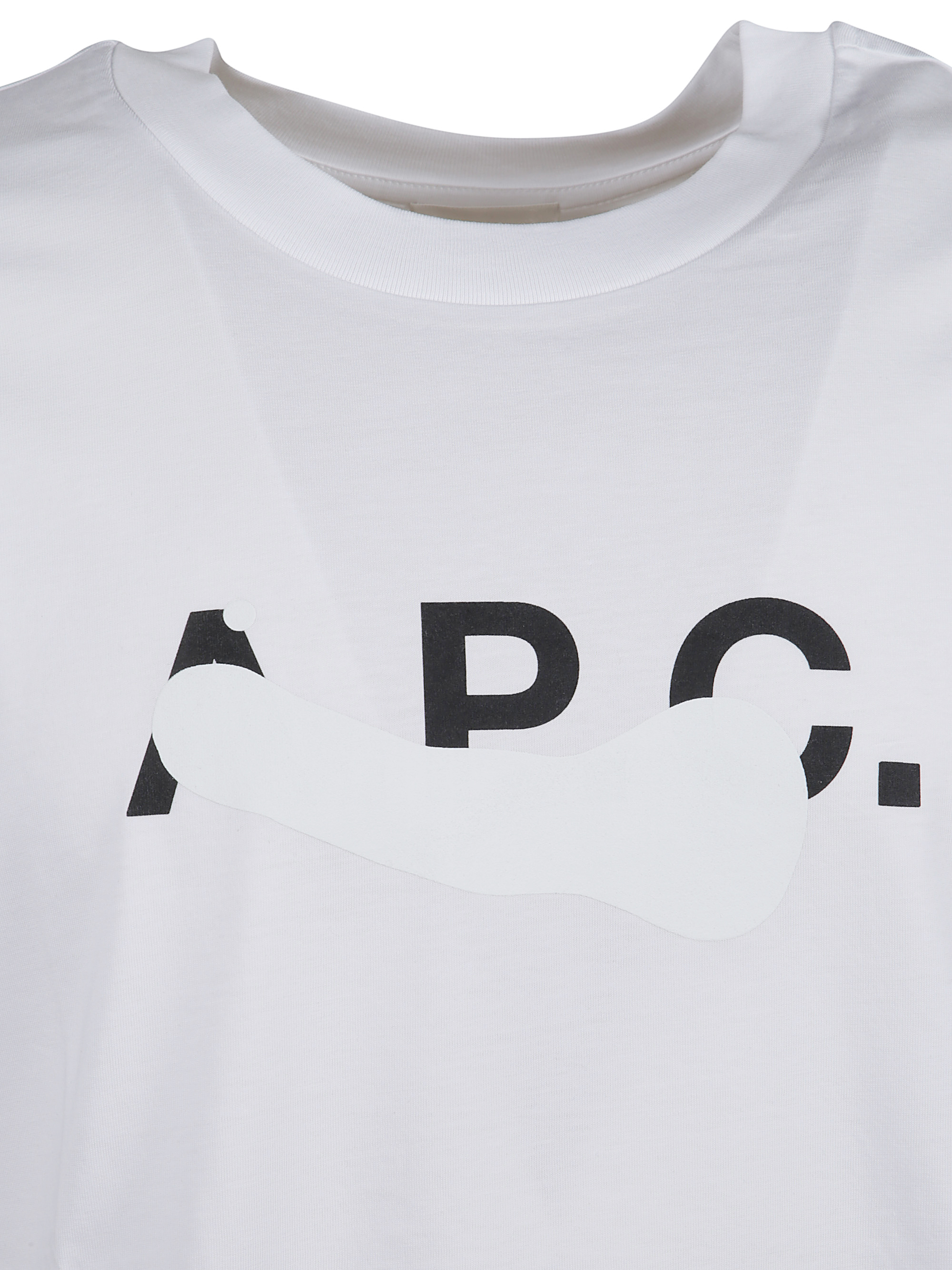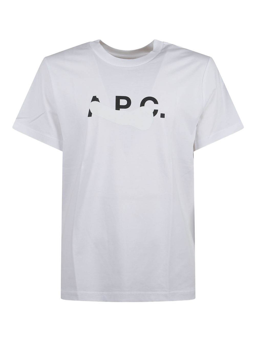 White cotton APC logo T-shirt featuring a logo on the chest, a crew neck and short sleeves.
