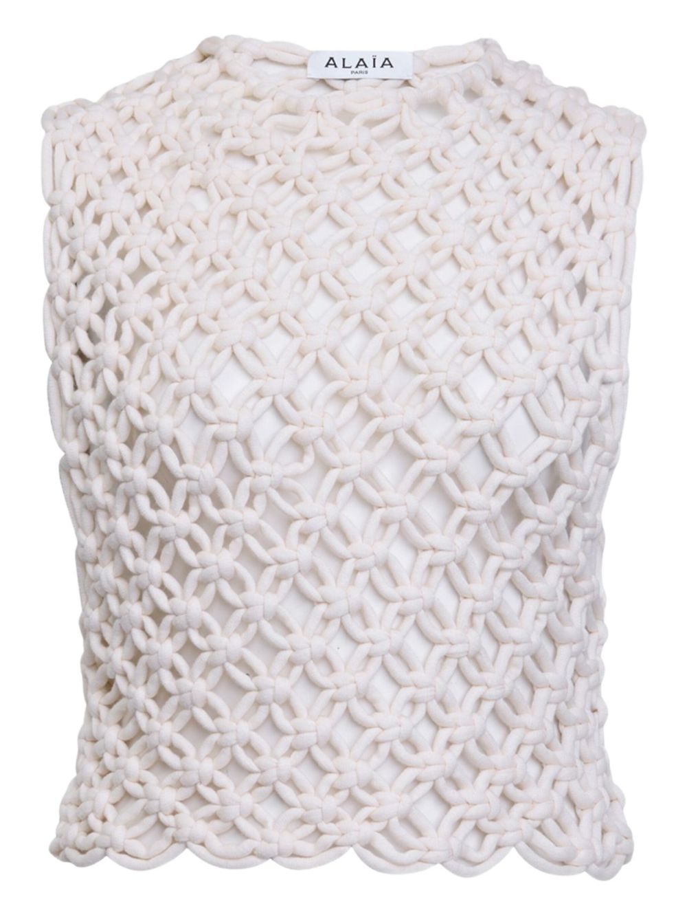 ALAIA white sleeveless ribbed knit tank top with a round neck.