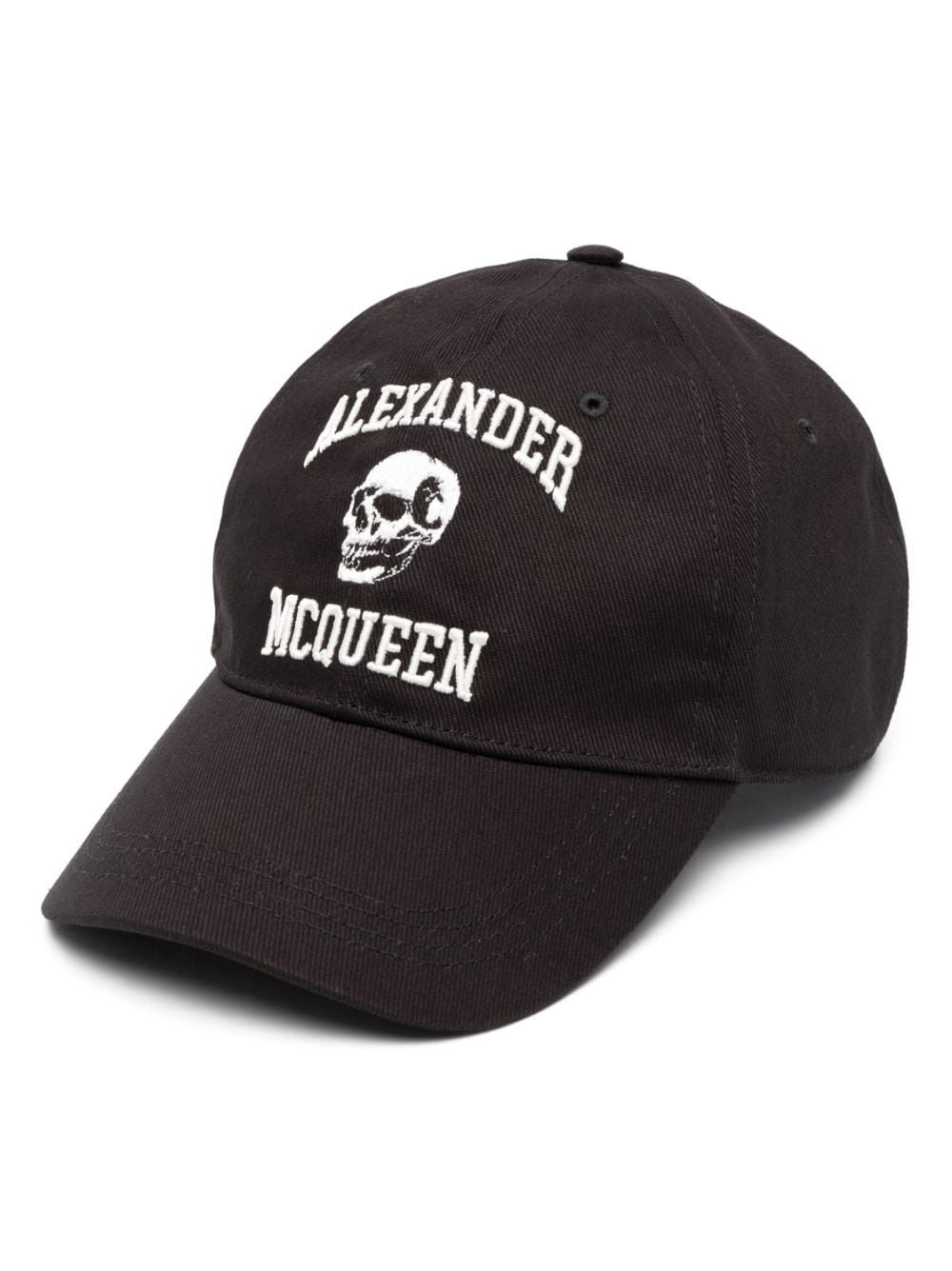 Hat with logo by ALEXANDER MCQUEEN in black, characterized by contrasting front logo, curved visor, adjustable strap.