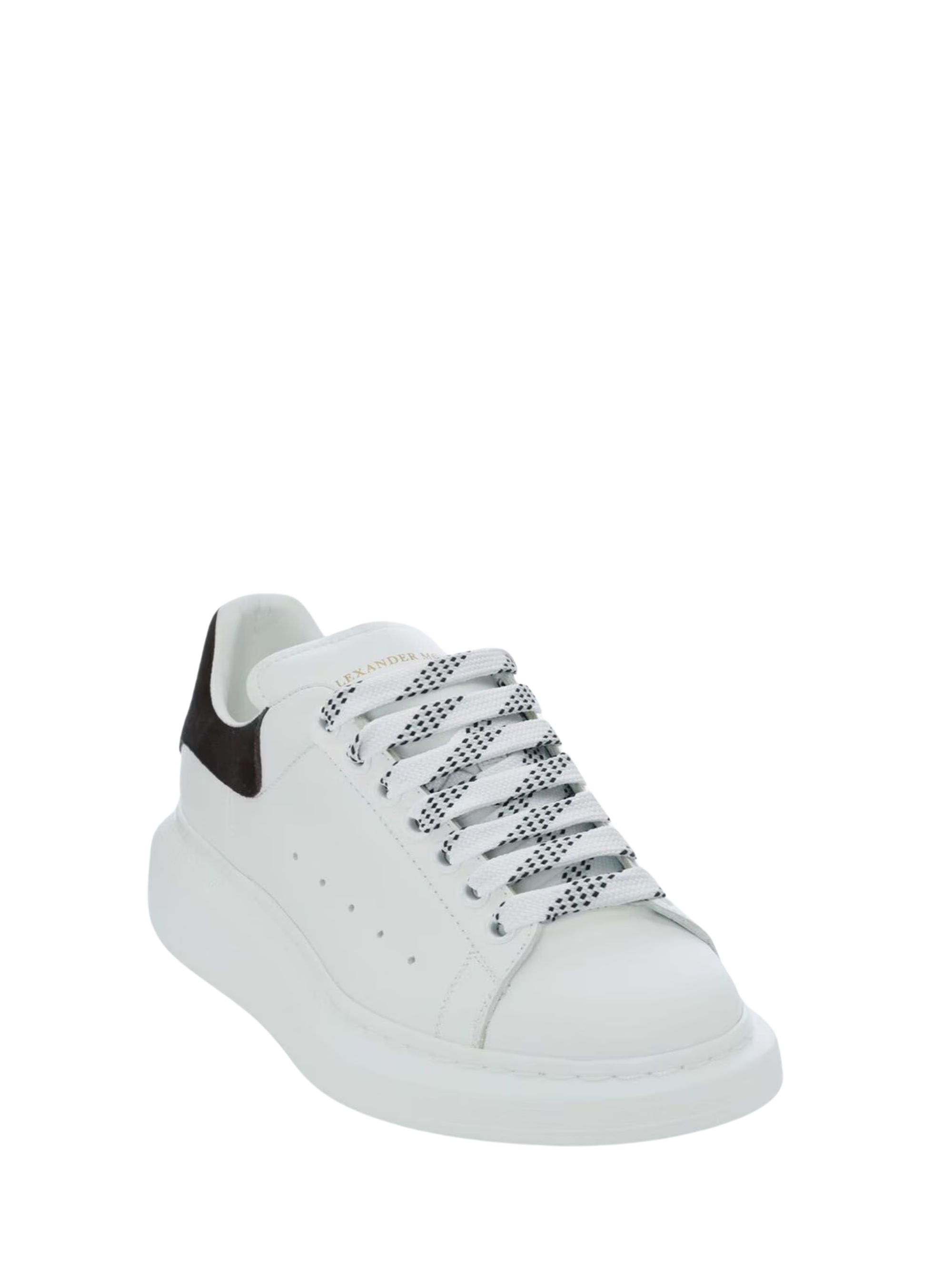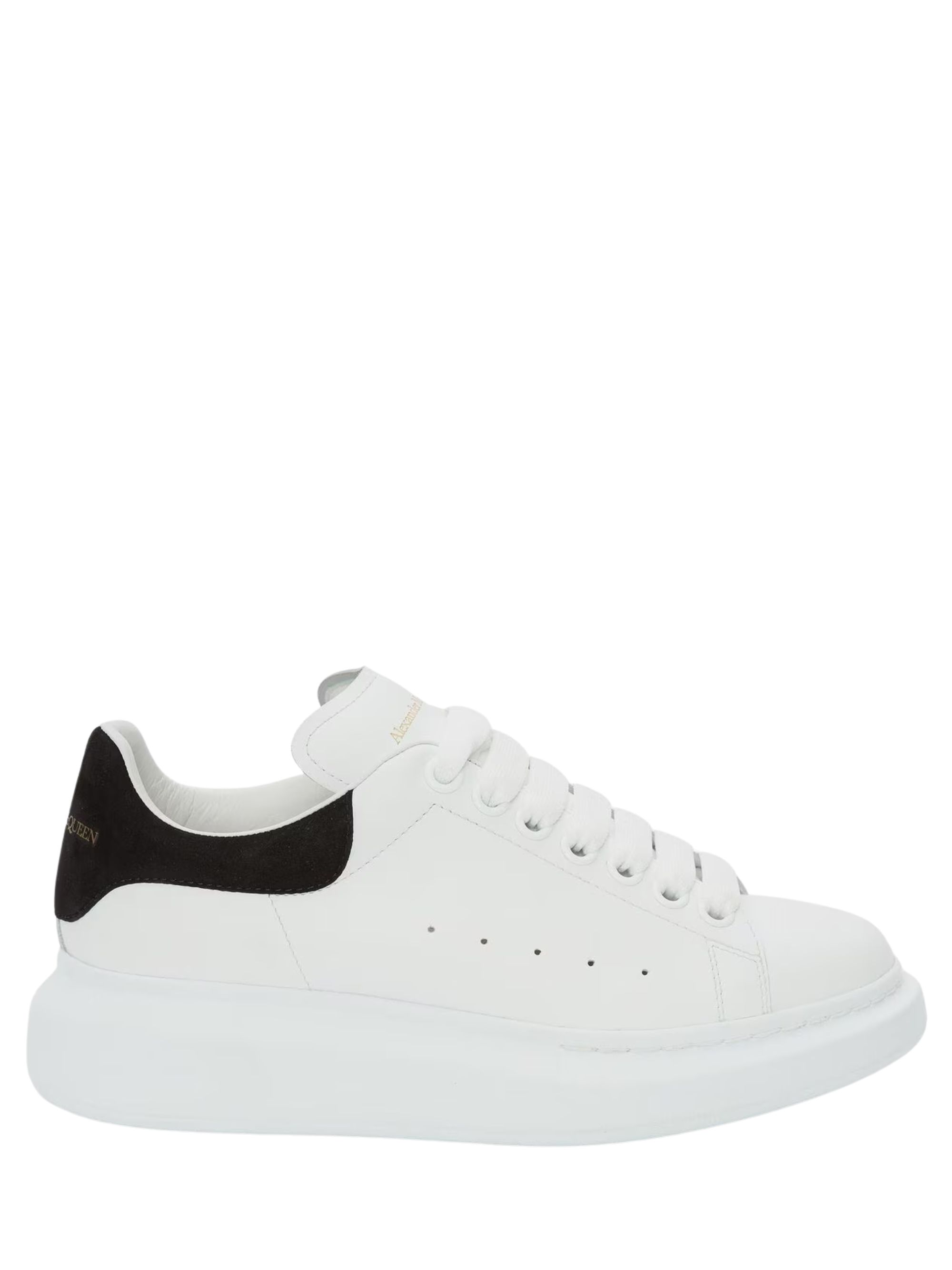 Larry sneakers by ALEXANDER MCQUEEN in white leather with black suede heel tab and oversized sole.