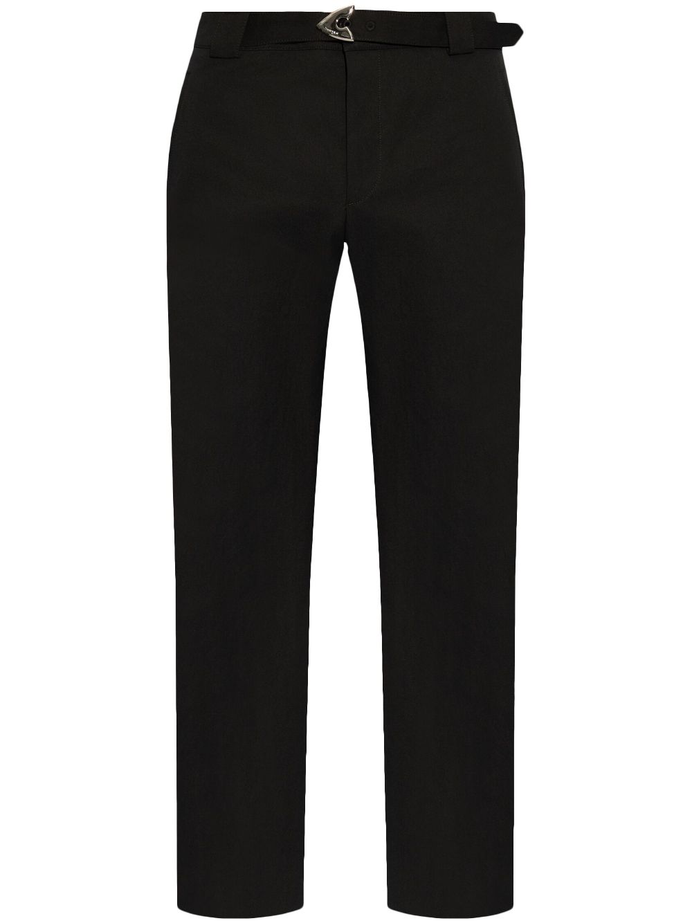 Tailored trousers by ALEXANDER MCQUEEN in black cotton with belt, slanted side pockets, back welt pockets with button and hidden front fastening.