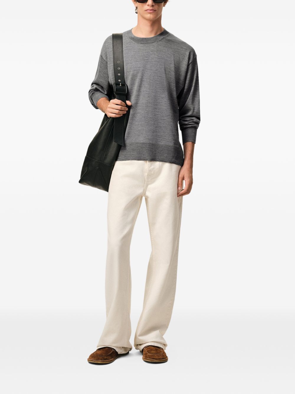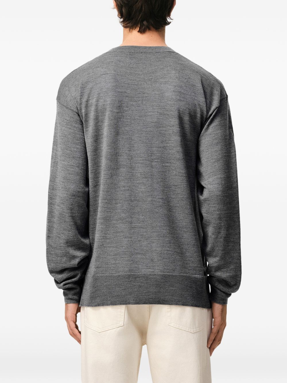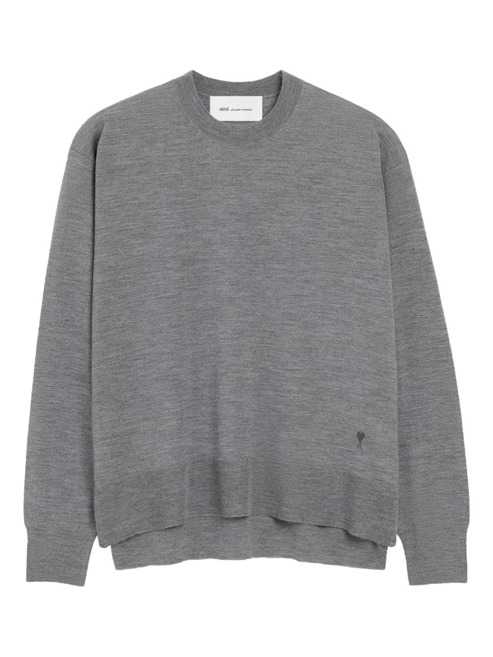 Ami de Coeur sweater by AMI PARIS in grey wool, featuring a crew neck, long sleeves, ribbed finishes and logo at the bottom right.