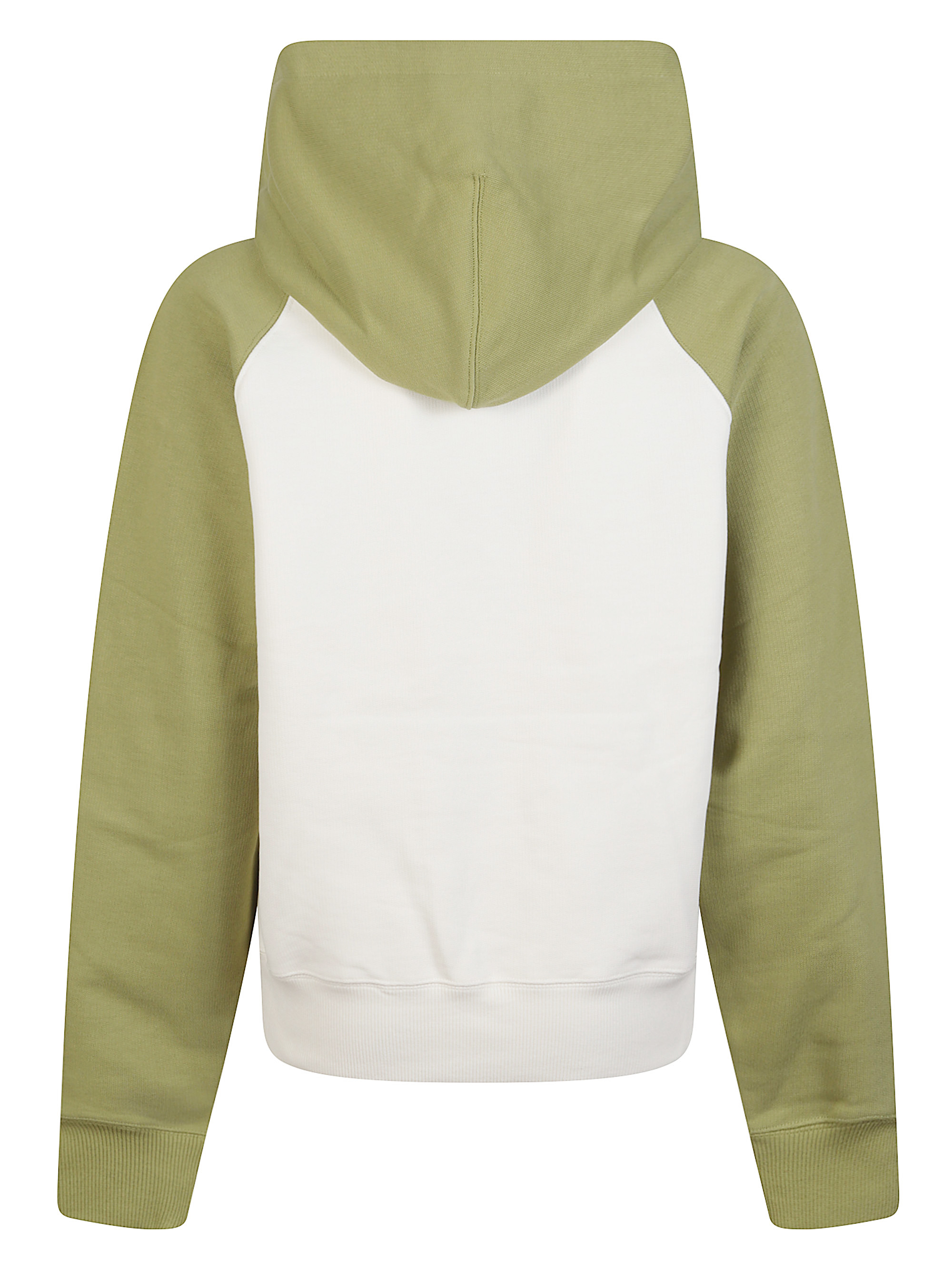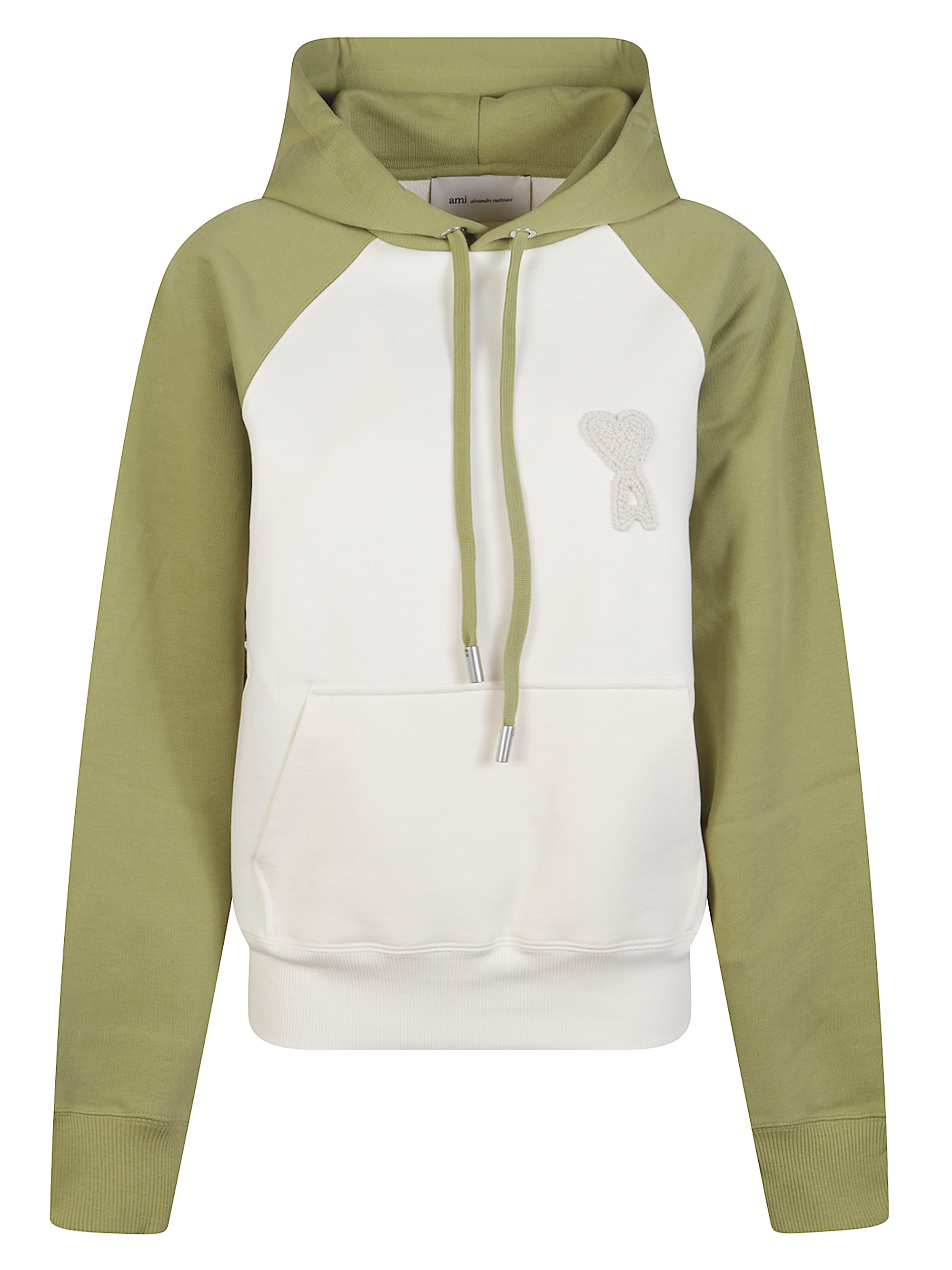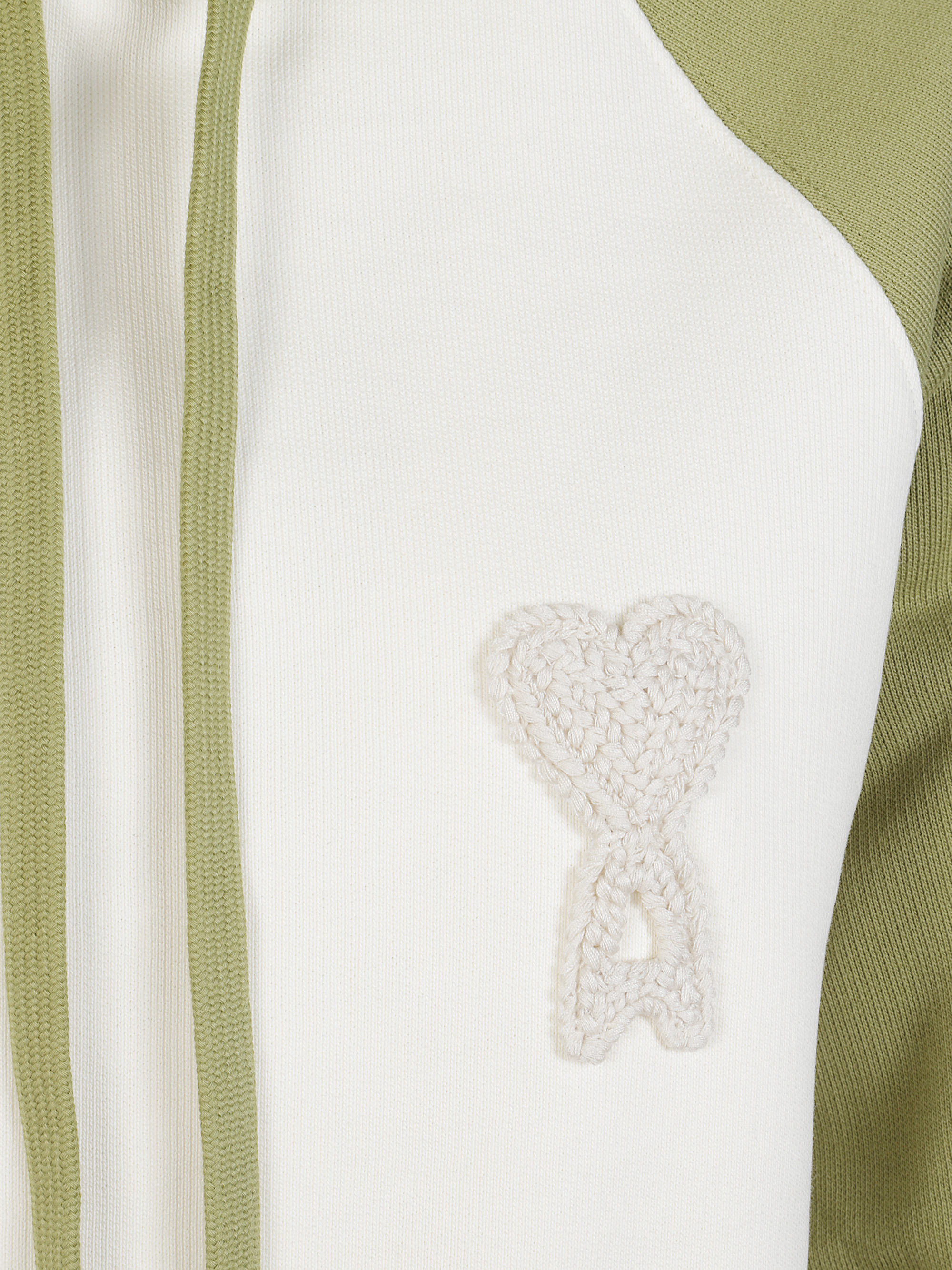 Ami De Coeur sweatshirt by AMI PARIS in green and beige cotton with drawstring hood, logo on the left chest and elasticated ribbed edges.