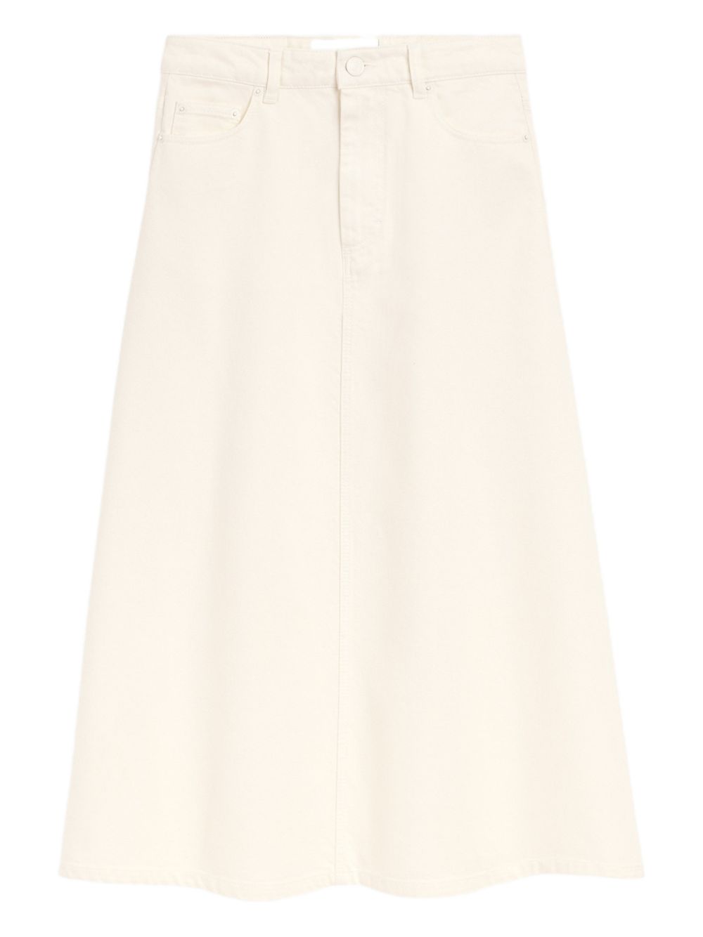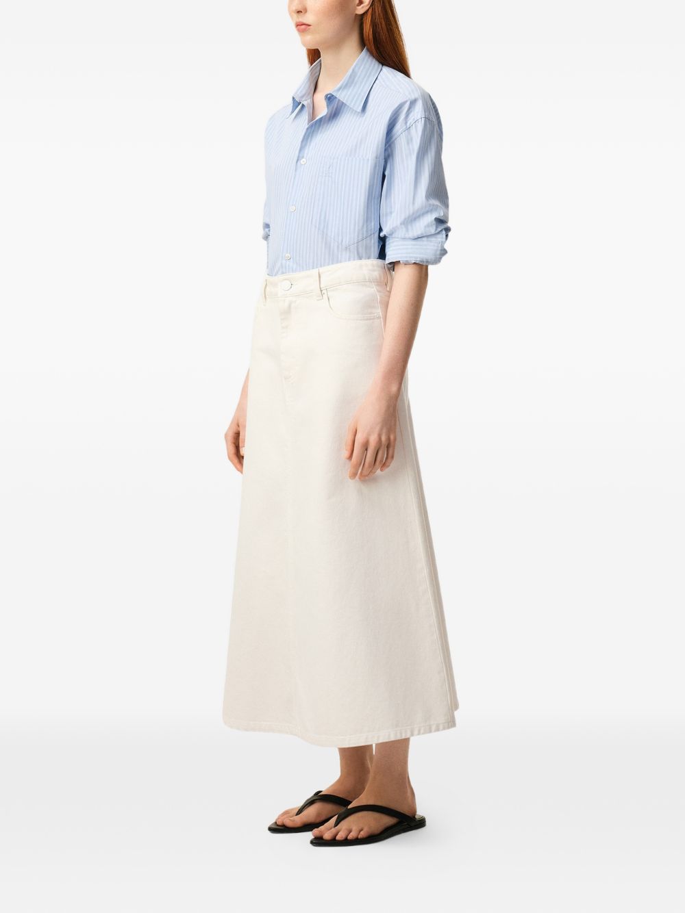 Long white cotton skirt by AMI PARIS, featuring a low waist, zip fastening, metal rivets and buttons, "ami alexandre mattiussi" Jacron on the back and tone-on-tone stitching.