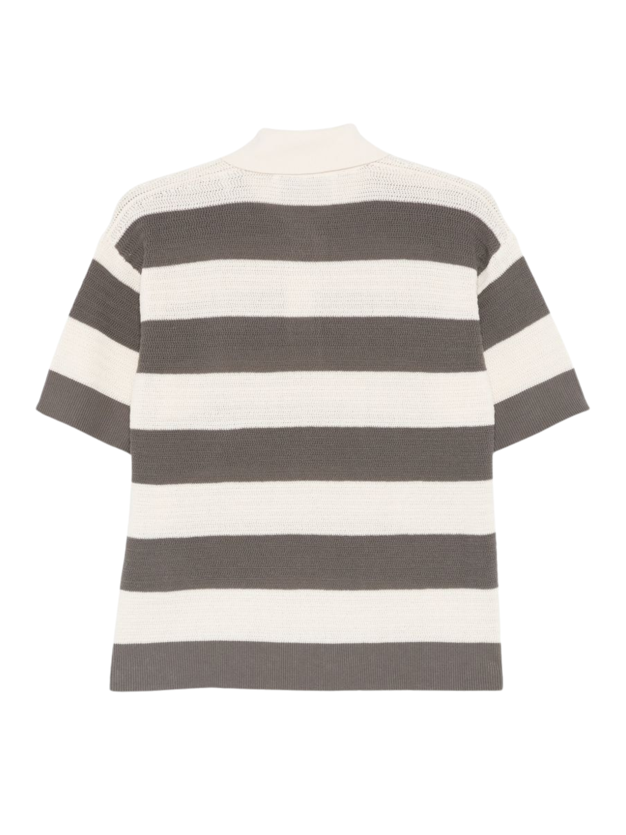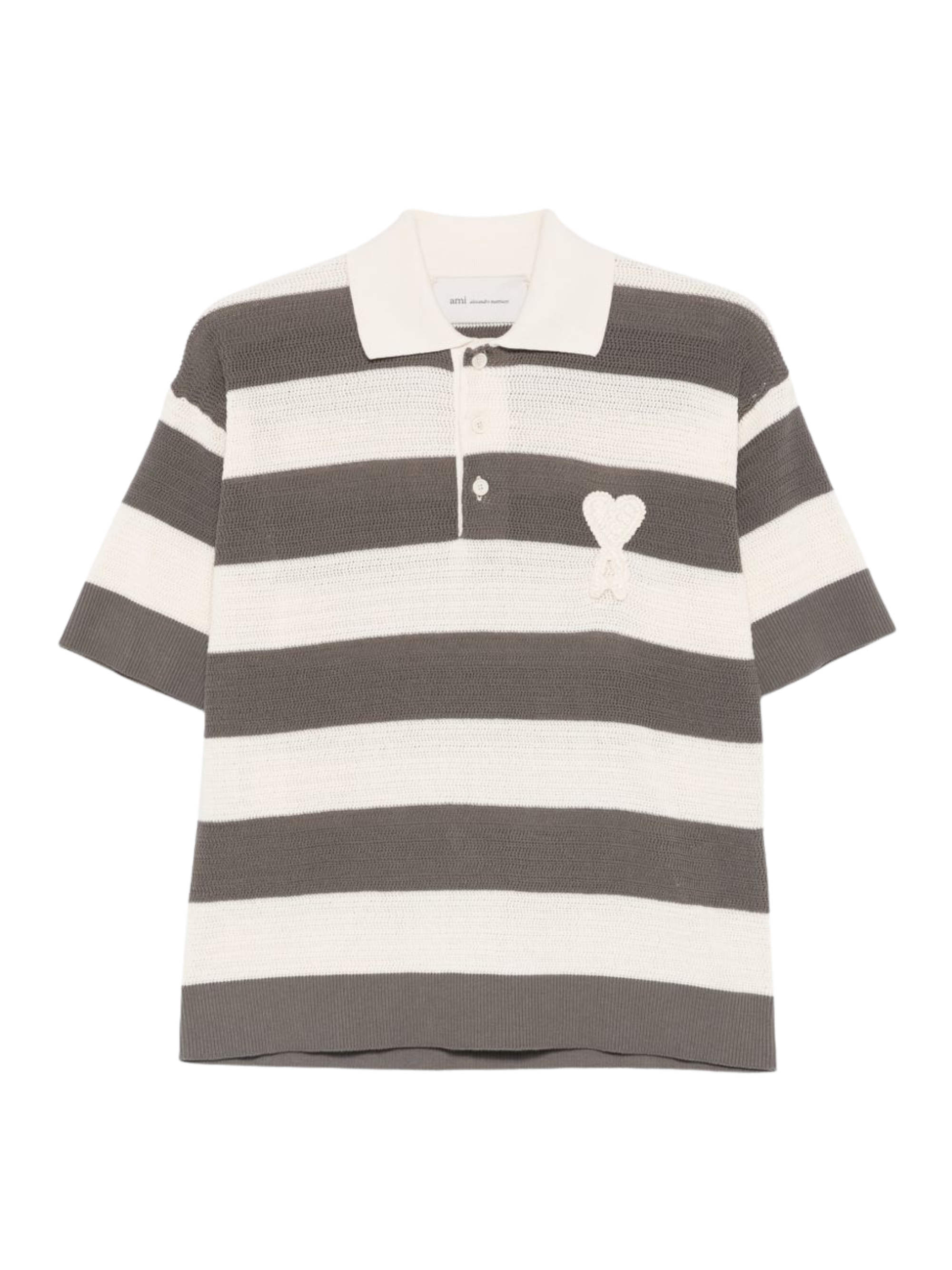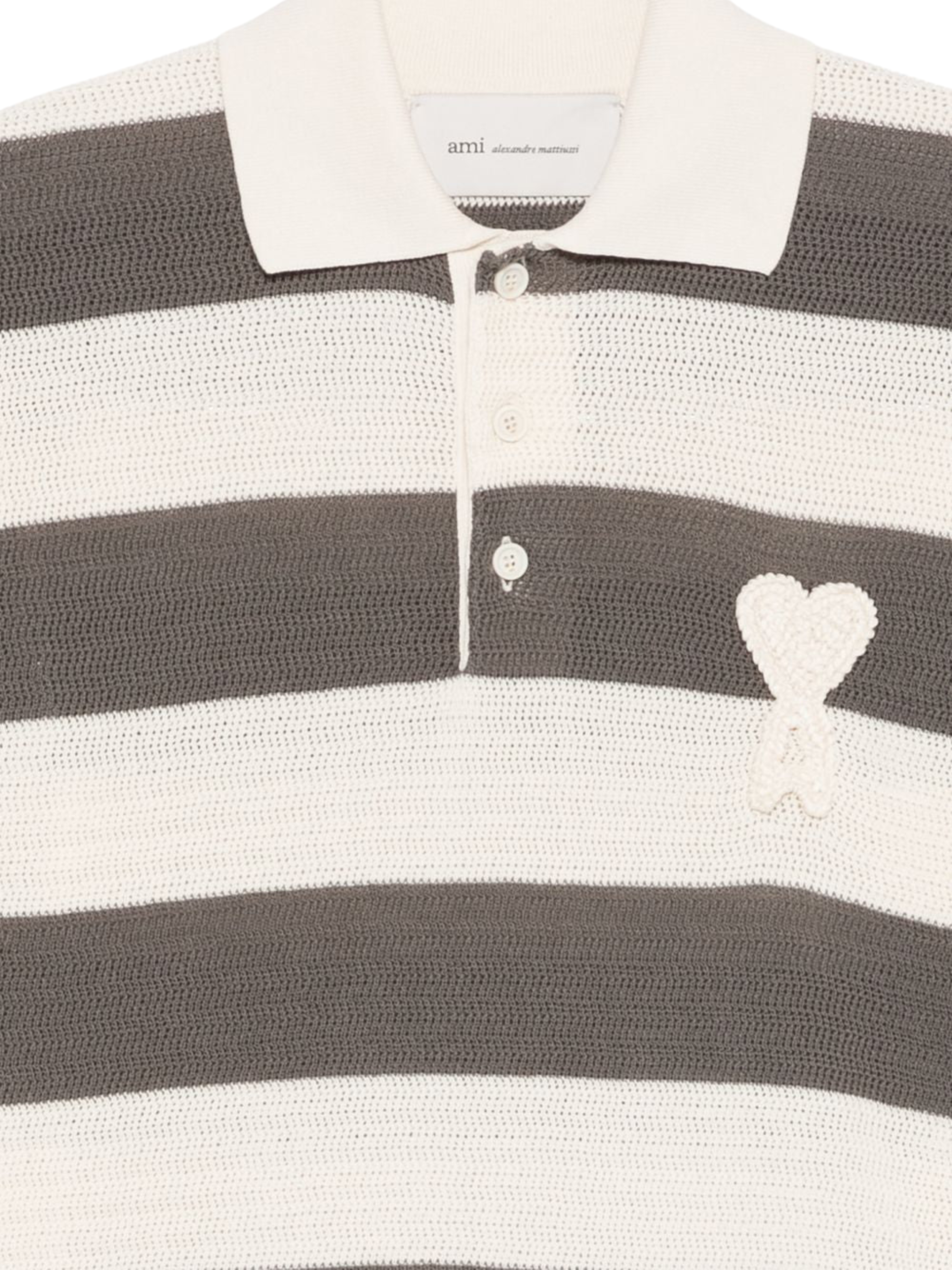 Ami de Coeur polo shirt by AMI PARIS in cream-colored striped cotton, featuring short sleeves, a classic collar, a button fastening and Ami de Coeur embroidery.