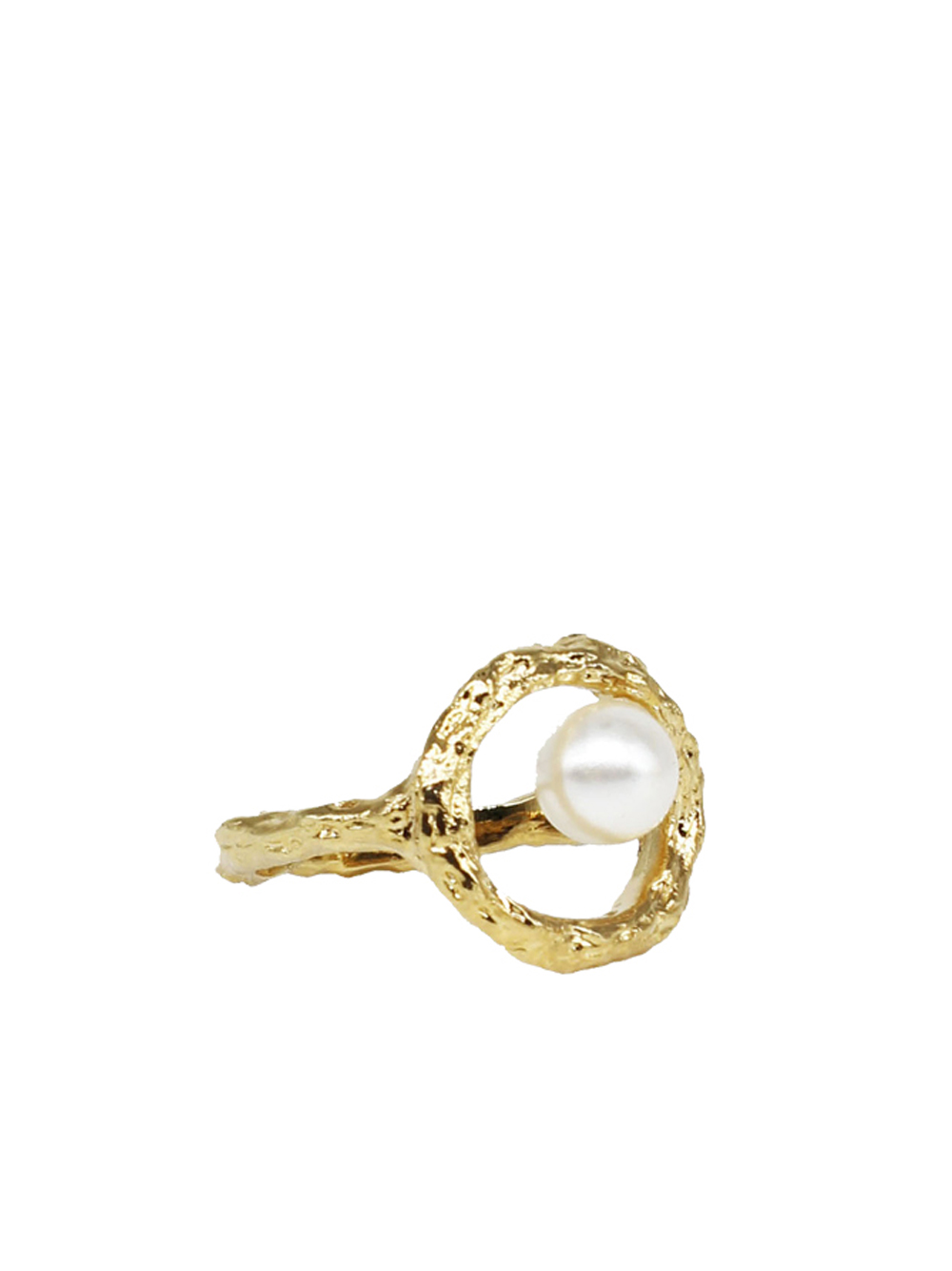 APNEA Planetary ring in 18K gold plated brass and bronze, pearl cream.