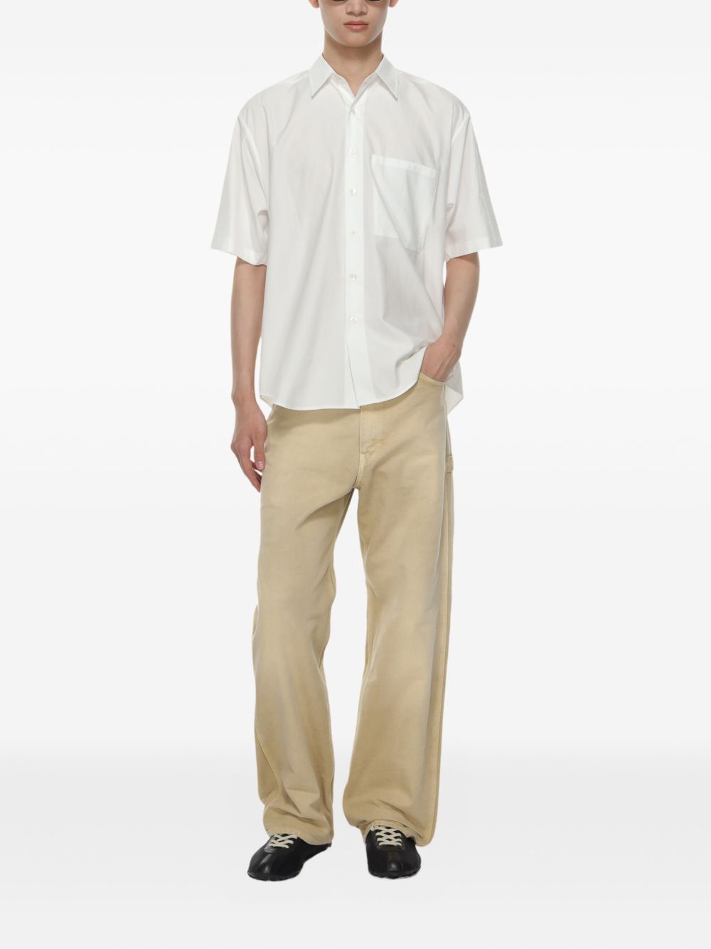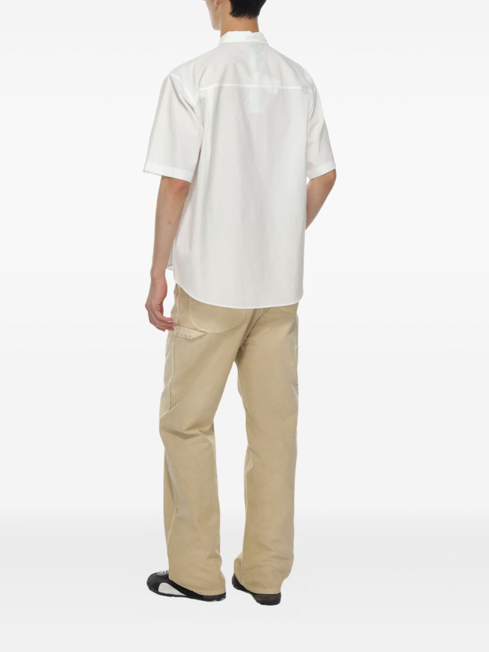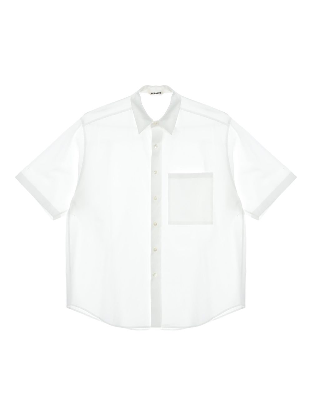 AURALEE cotton shirt in white with short sleeves, classic collar and button fastening.