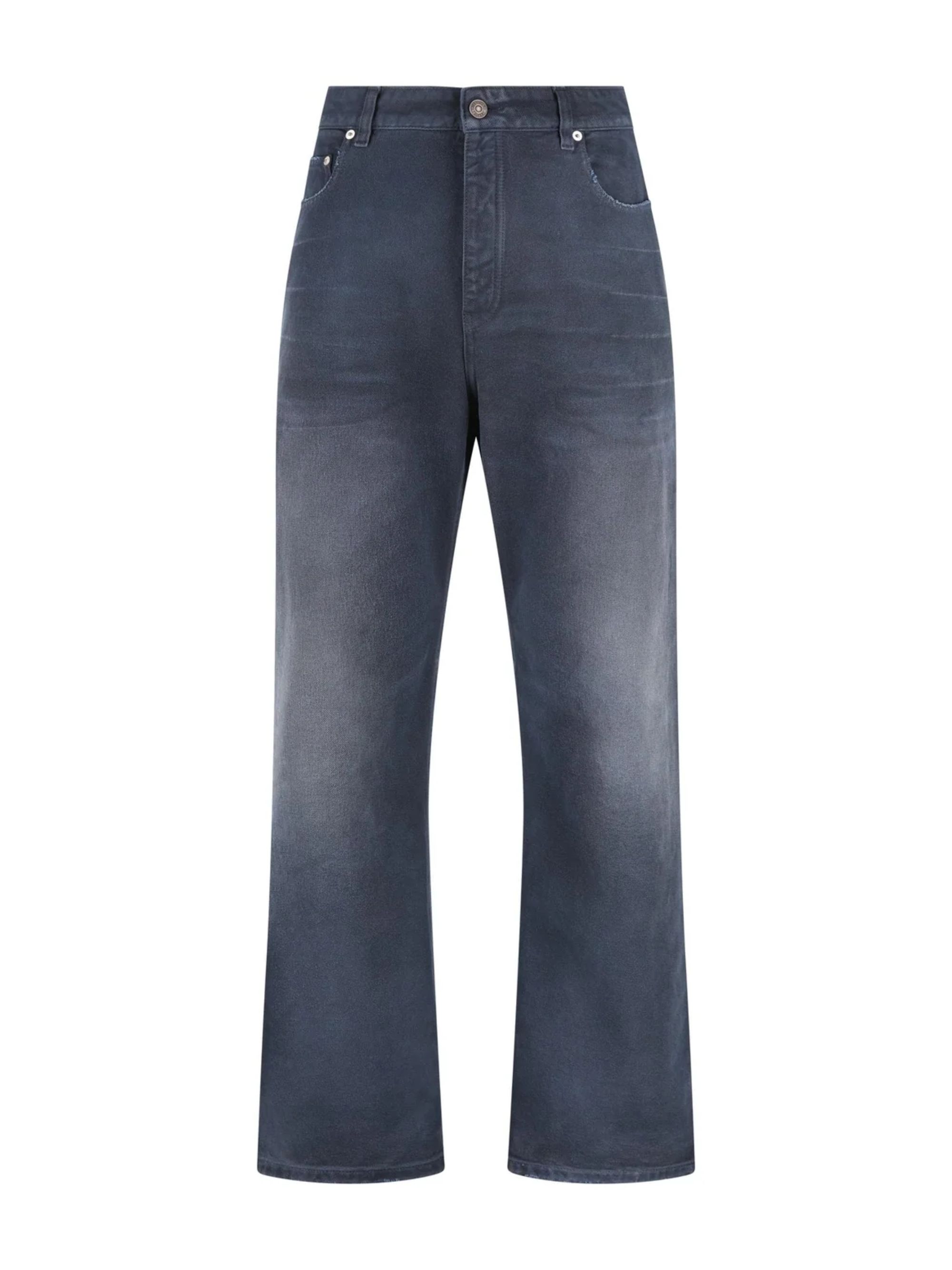 Baggy jeans by BALENCIAGA in blue cotton denim, featuring a regular waist, front button and zip fastening, wide leg, 5 pockets and a logo label on the back.
