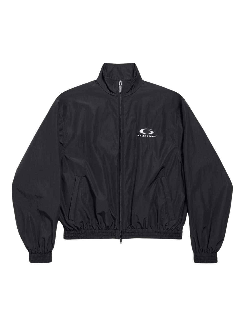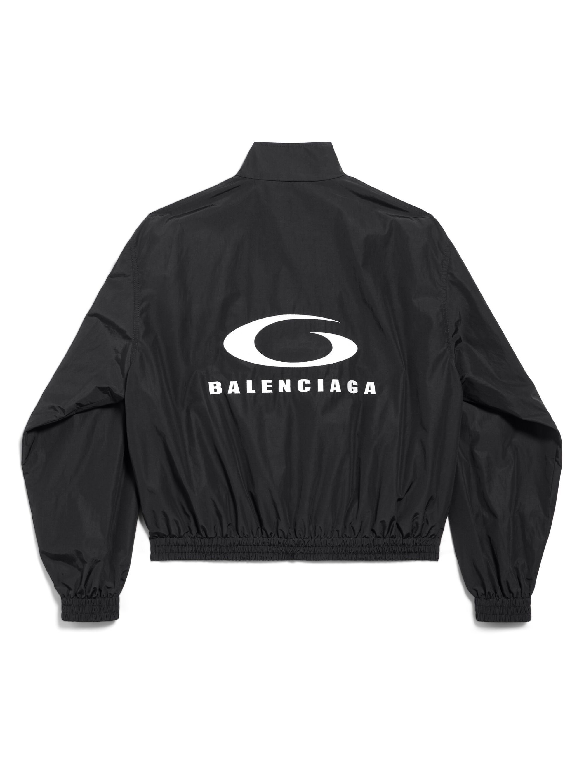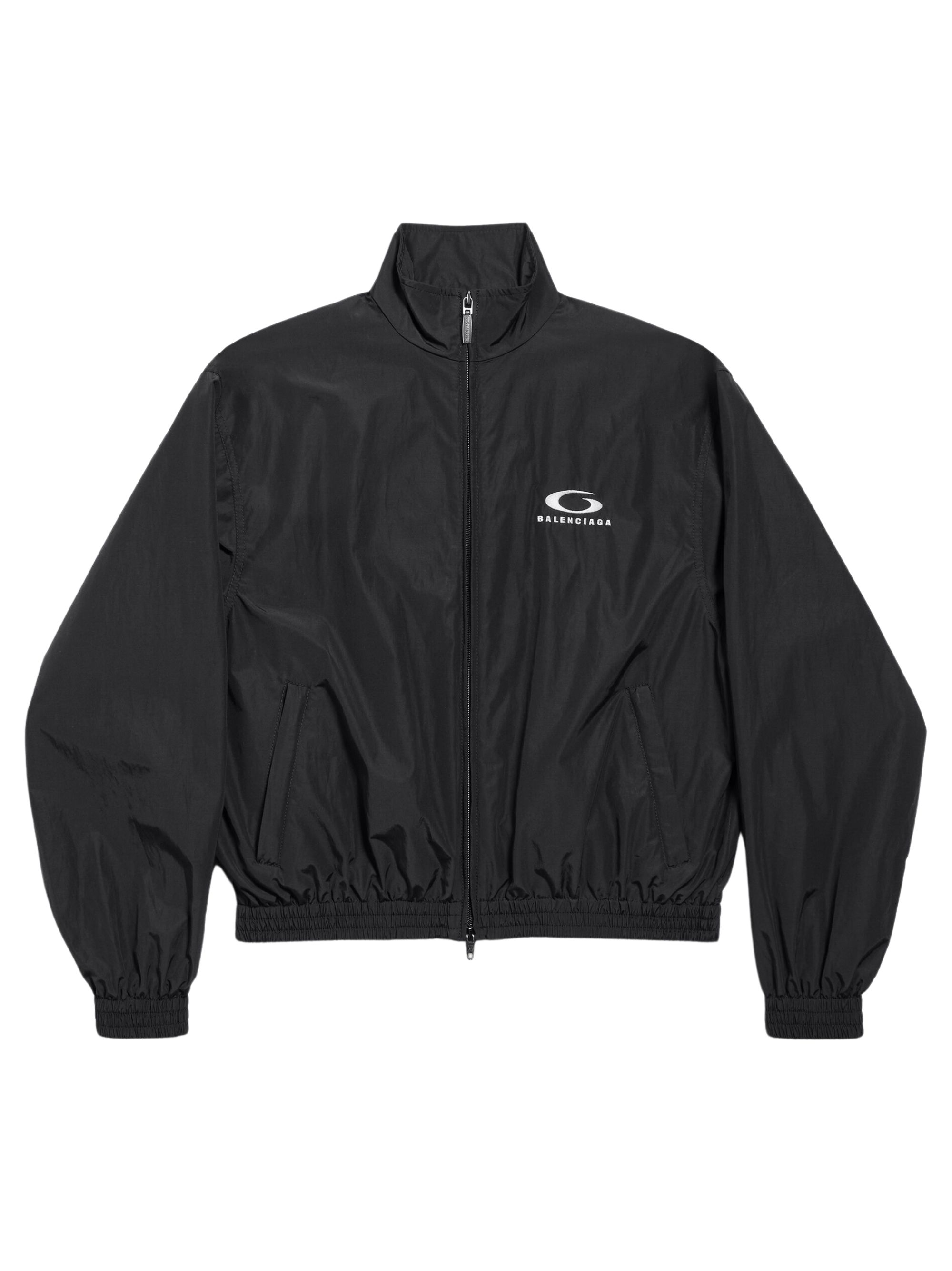 Loop Sports Icon jacket by BALENCIAGA in black cotton, featuring a double-end zip fastening, 2 slanted zip pockets, gathered cuffs and waist and Loop Sports Icon embroidered on the front and back.