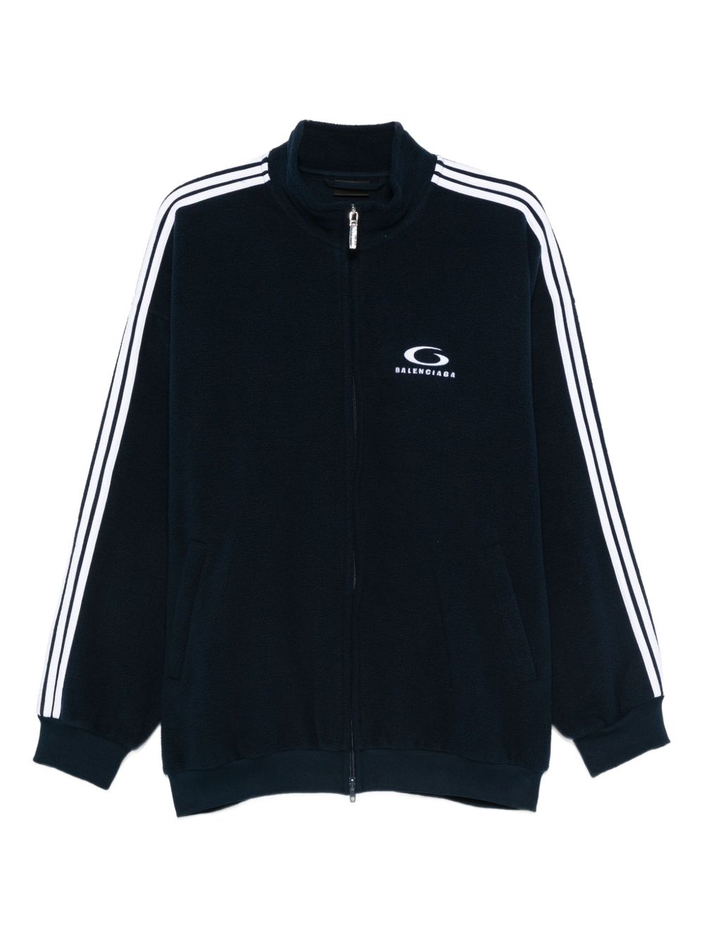 BALENCIAGA Loop Sports Icon sweatshirt in blue cotton with striped detailing on the sleeves and a zip closure.