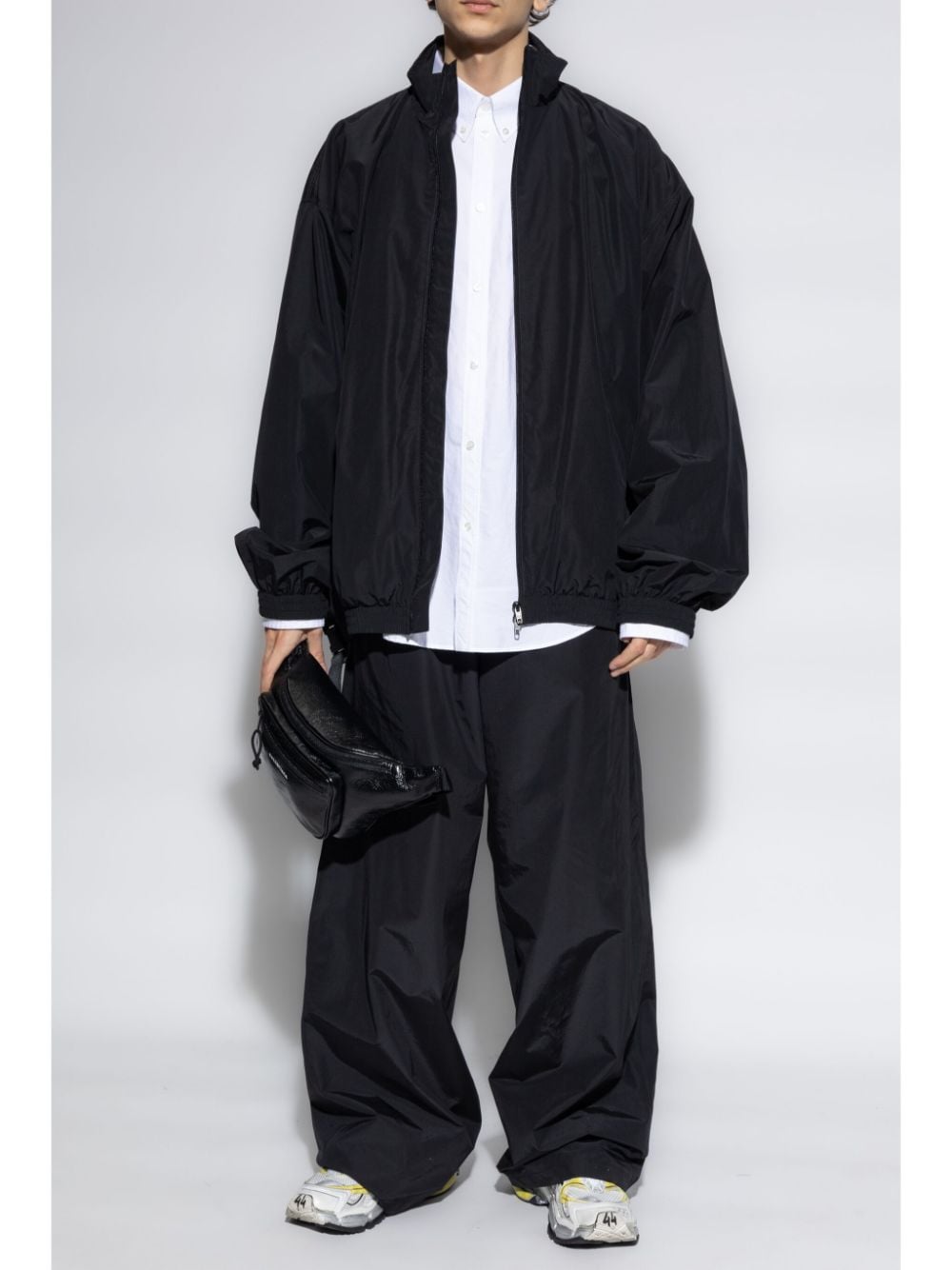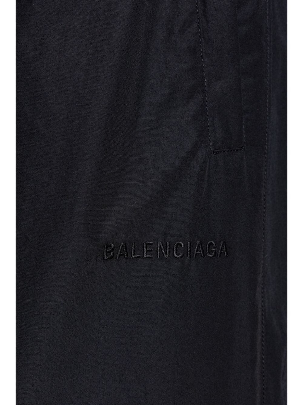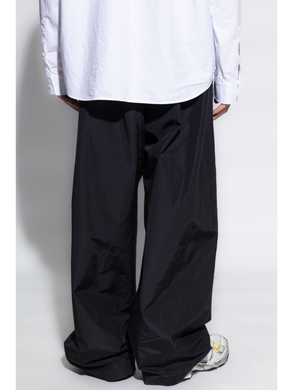 Wide leg trousers from BALENCIAGA in black cotton, straight cut, elasticated waist and side pockets with zip.