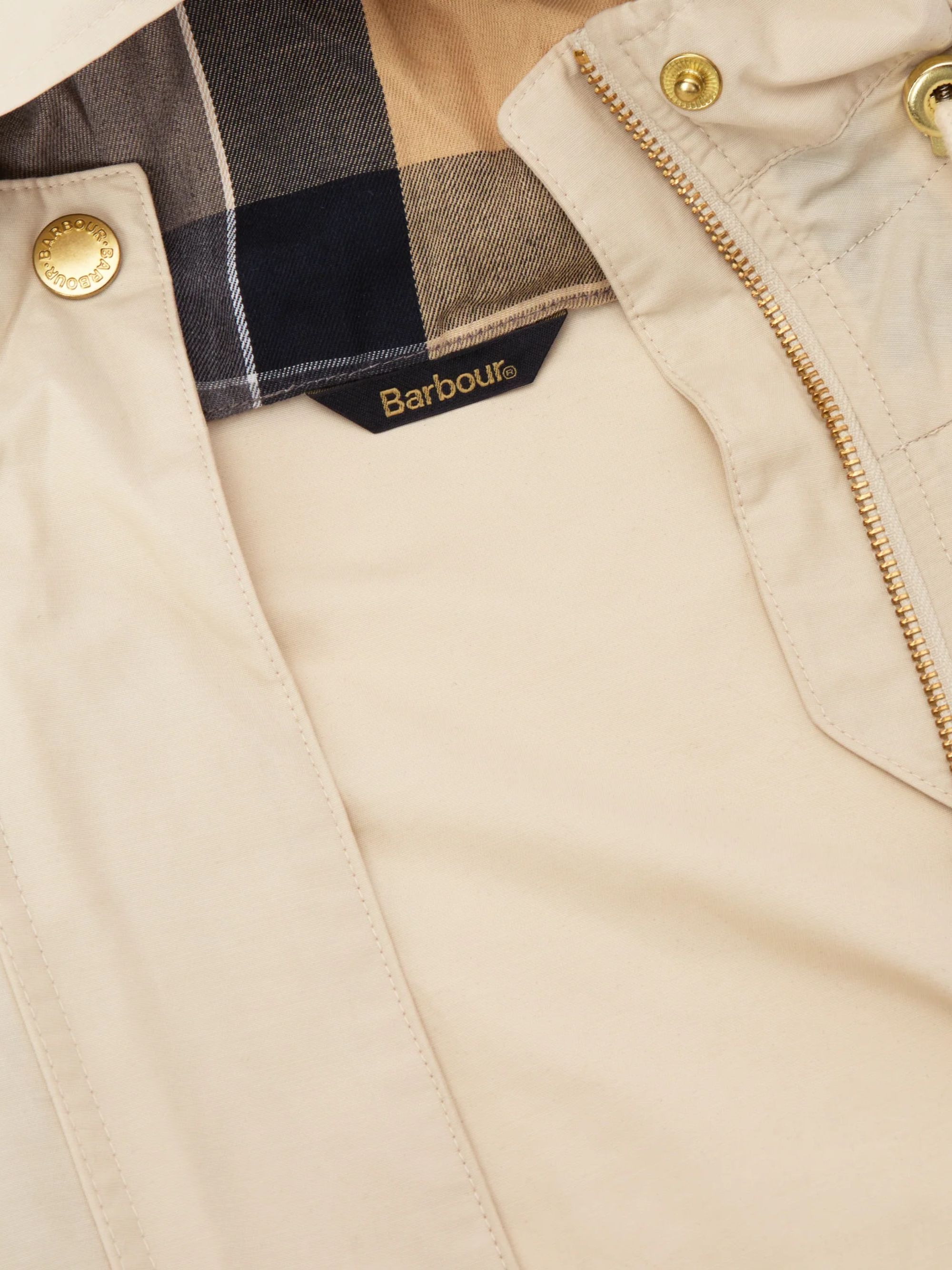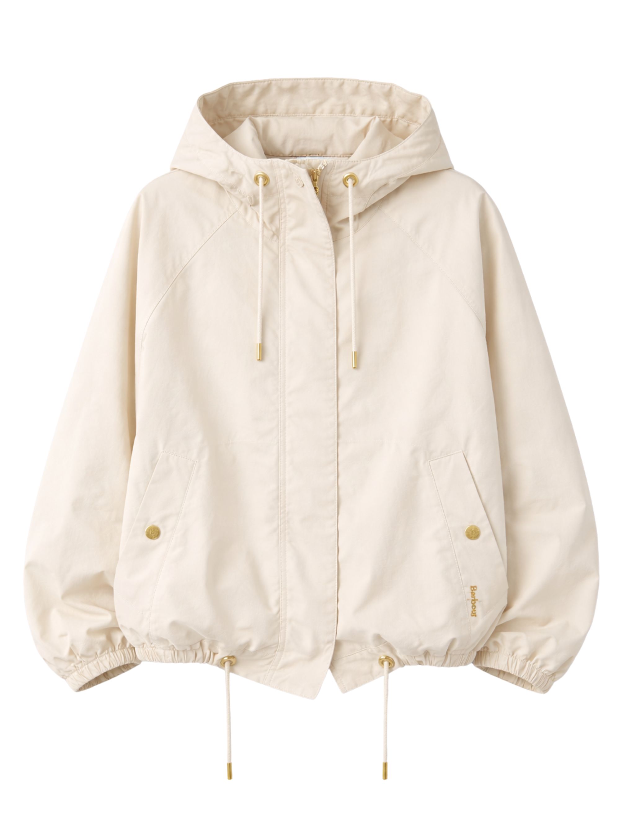 BARBOUR Hawkridge jacket in cream cotton, featuring a tartan-lined drawstring hood, welt pockets with press studs, a drawstring hem, a logo to the front and a zip fastening.