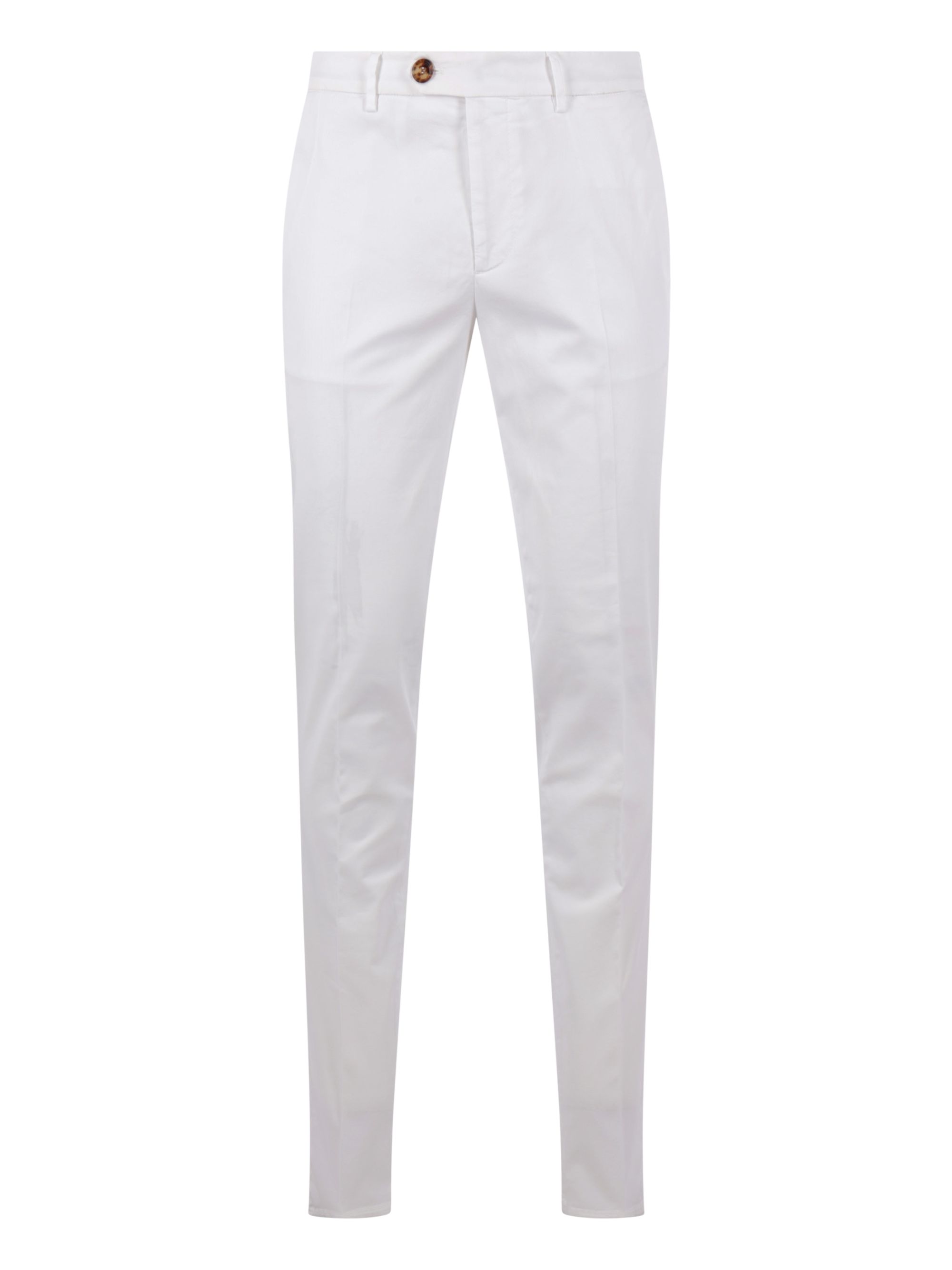 American Pima trousers by BRUNELLO CUCCINELLI in white cotton, featuring a zip and button front fastening, multiple pockets and an ironed hem.