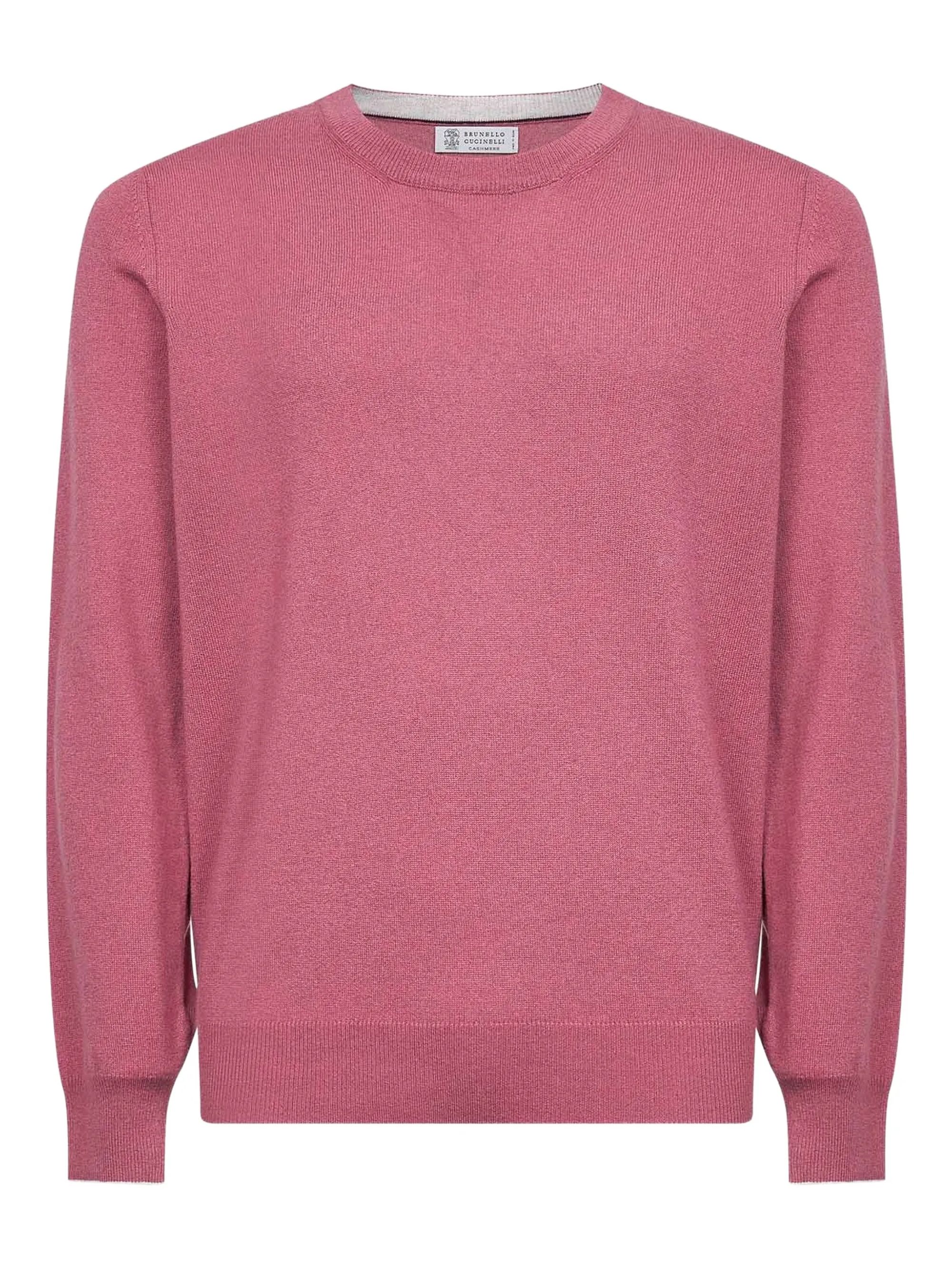 Red cashmere crewneck sweater by BRUNELLO CUCINELLI, featuring a crew neck, ribbed trims and long sleeves.