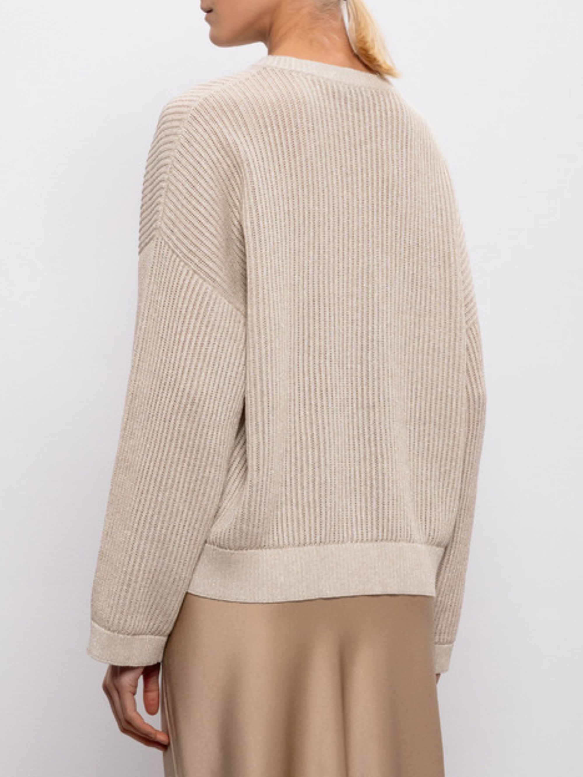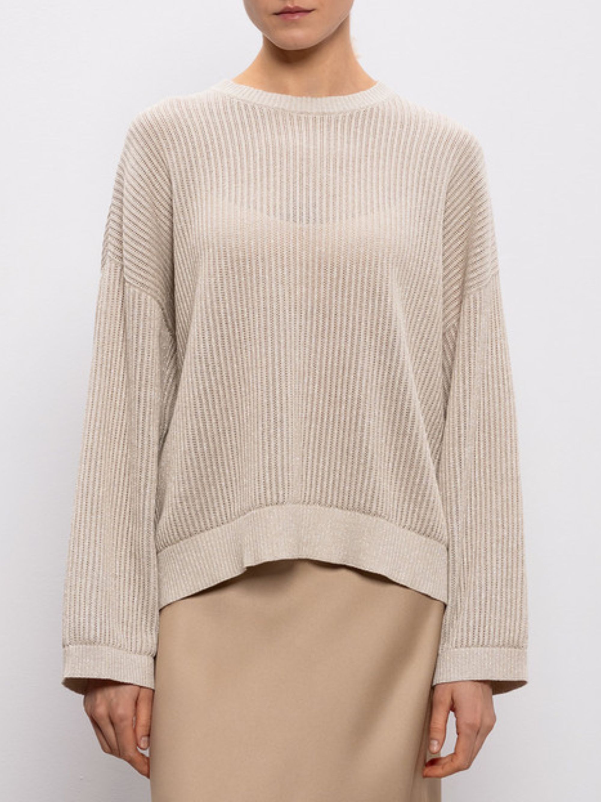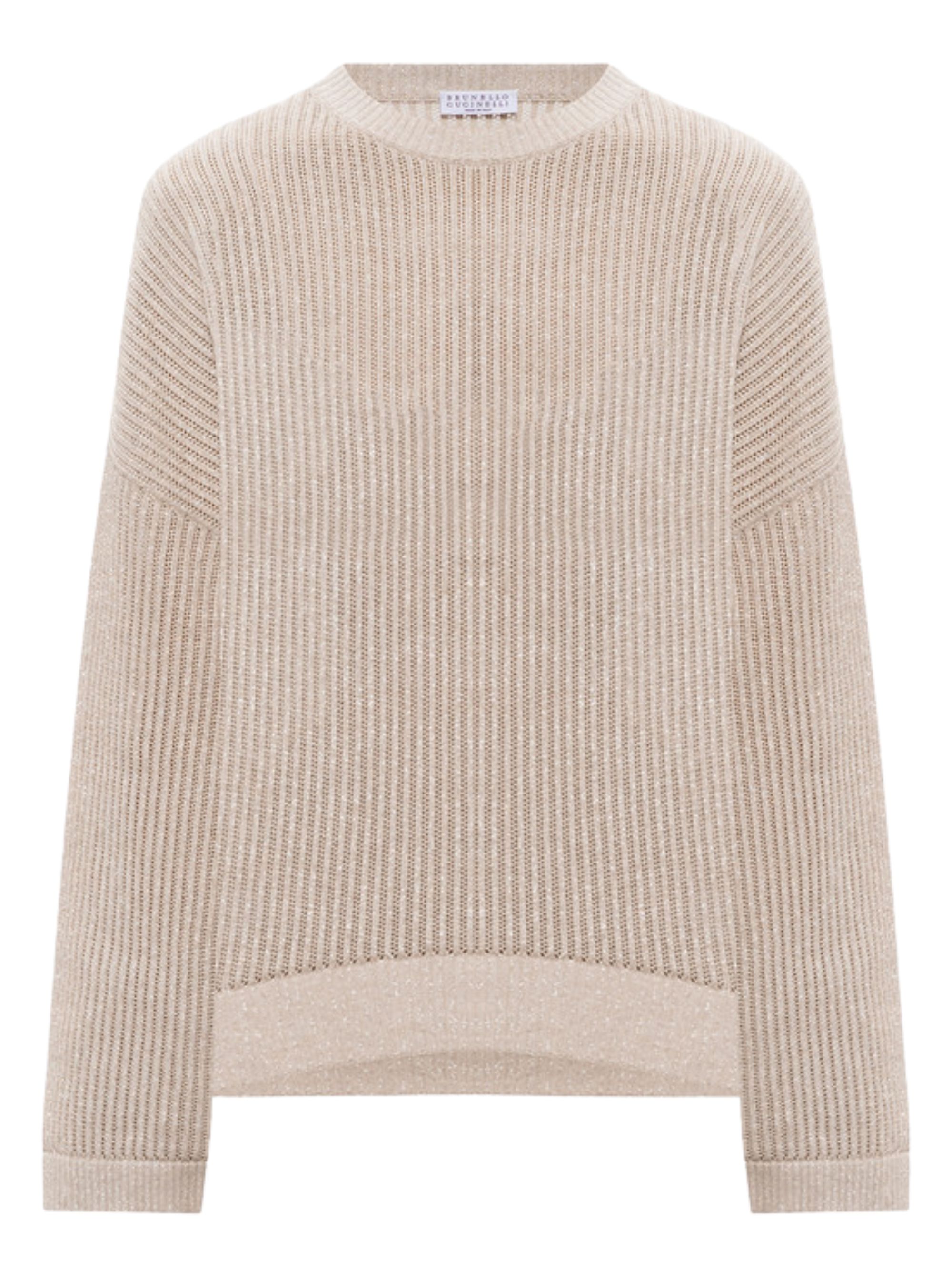 Beige crew neck sweater by BRUNELLO CUCINELLI in cotton, featuring a crew neck, ribbed finishes, long sleeves and dropped shoulders.