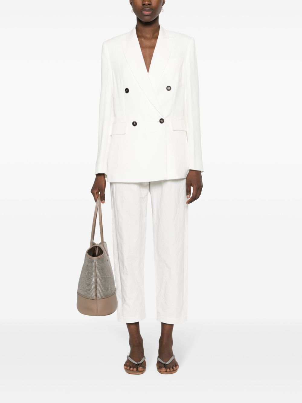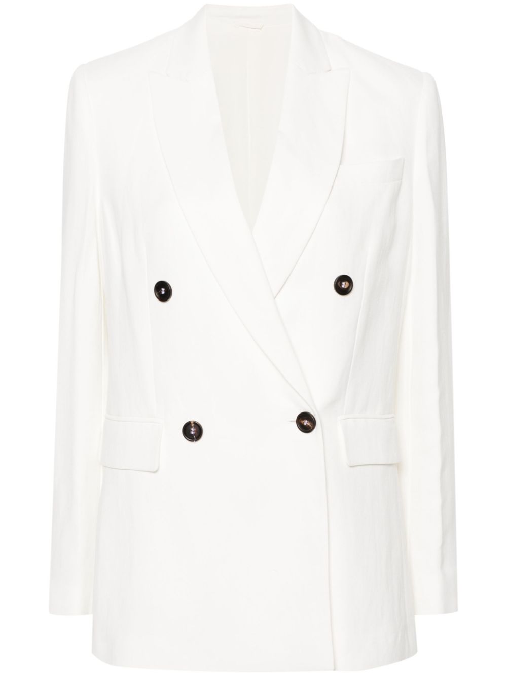 Double-breasted blazer by BRUNELLO CUCINELLI in white, characterized by double-breasted button closure, long sleeves, two front pockets.