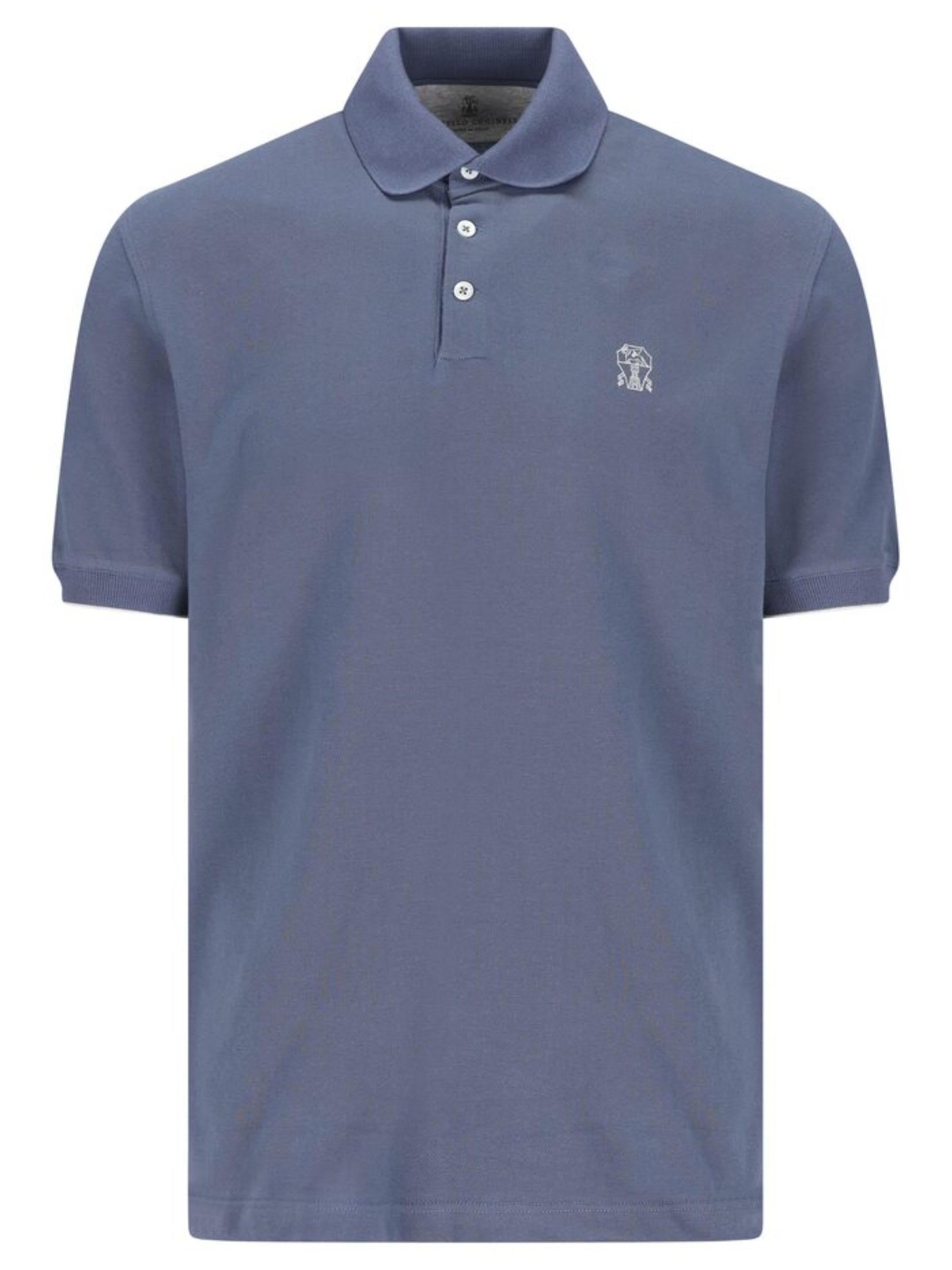 BRUNELLO CUCCINELLI blue cotton polo shirt with logo, featuring a classic collar, embroidered logo and button fastening.