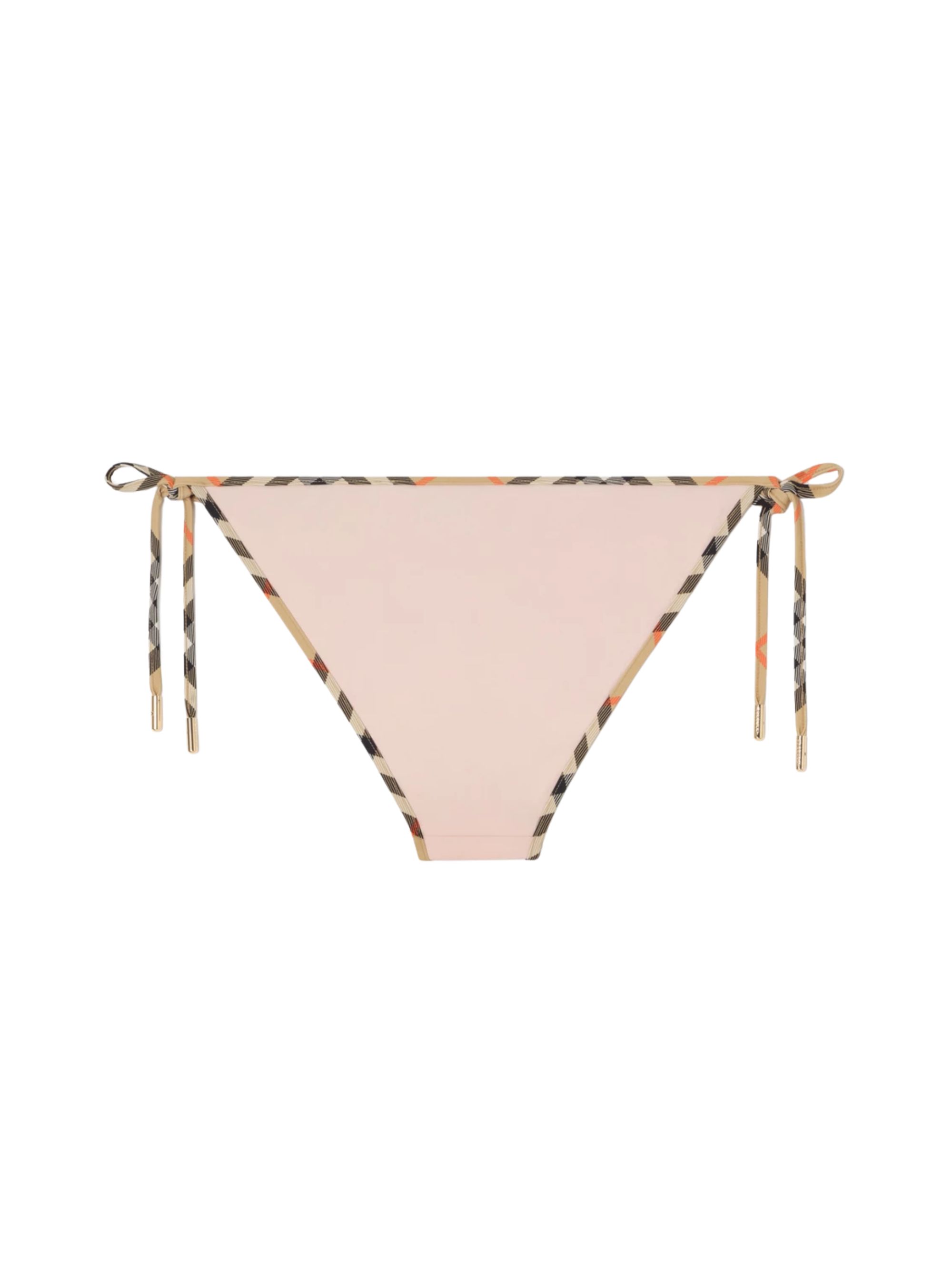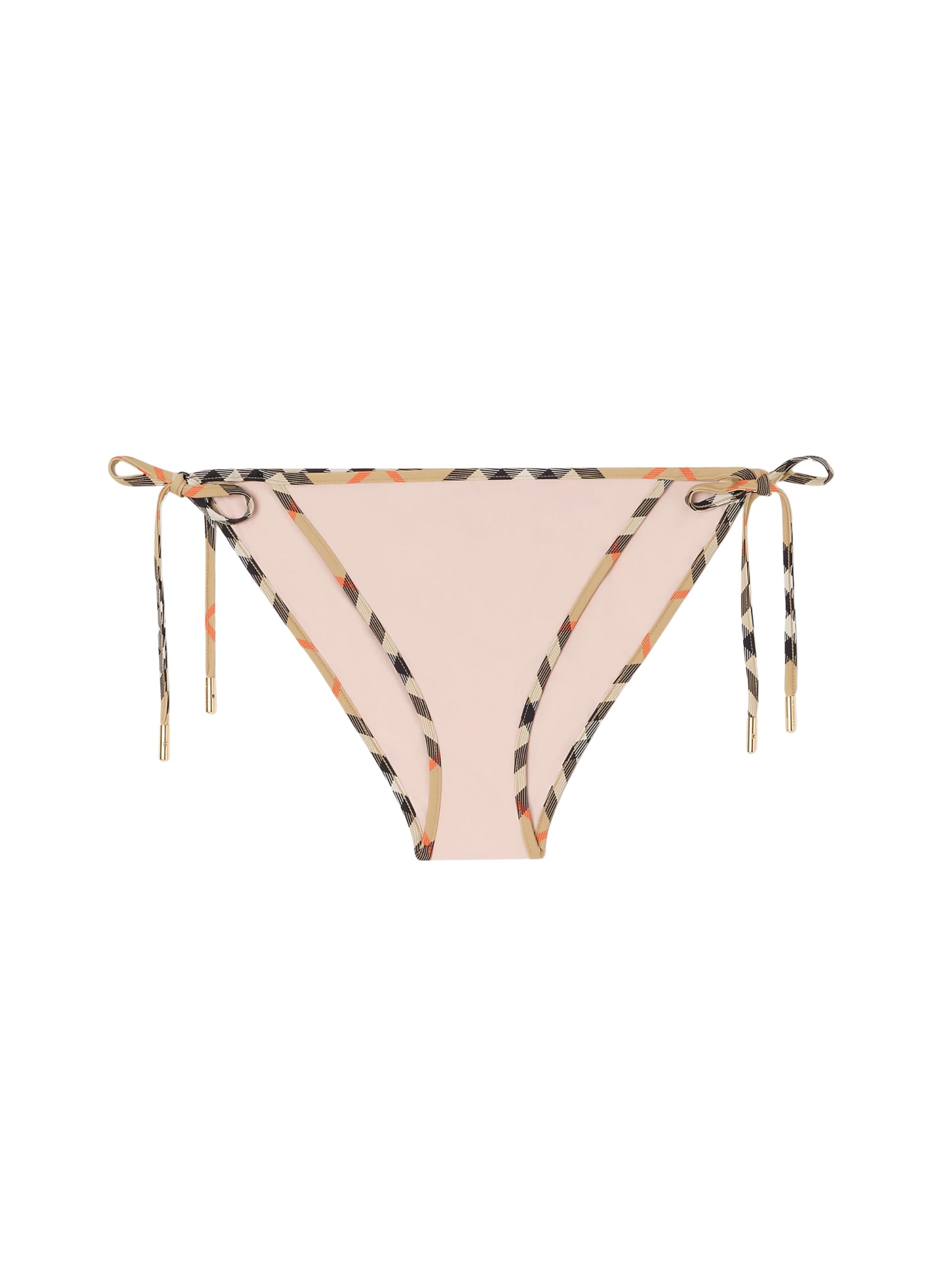 BURBERRY Check bikini bottoms in pink stretch nylon, featuring Burberry Check trims and a lace-up fastening.