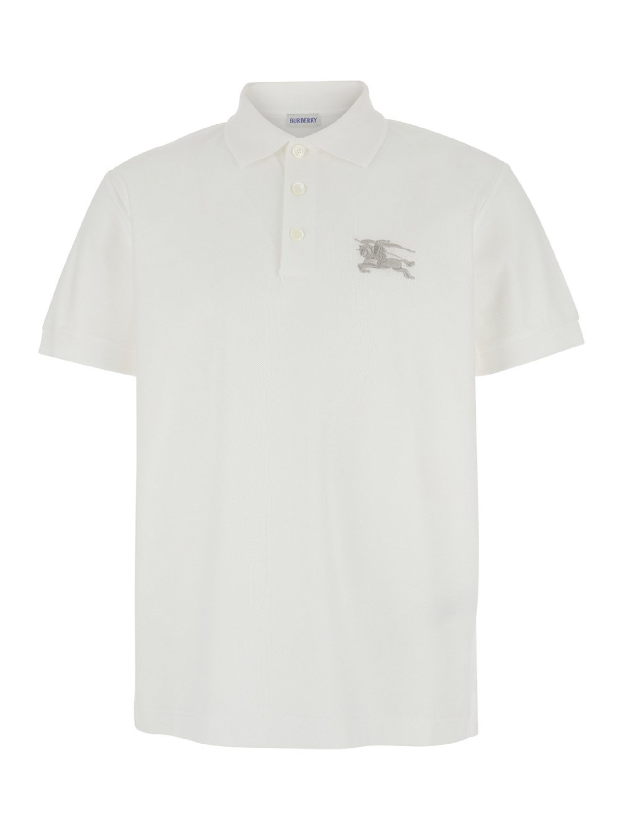 BURBERRY EKD polo shirt in white cotton, featuring a classic collar, button fastening, Equestrian Knight Design embroidered on the chest and short sleeves.