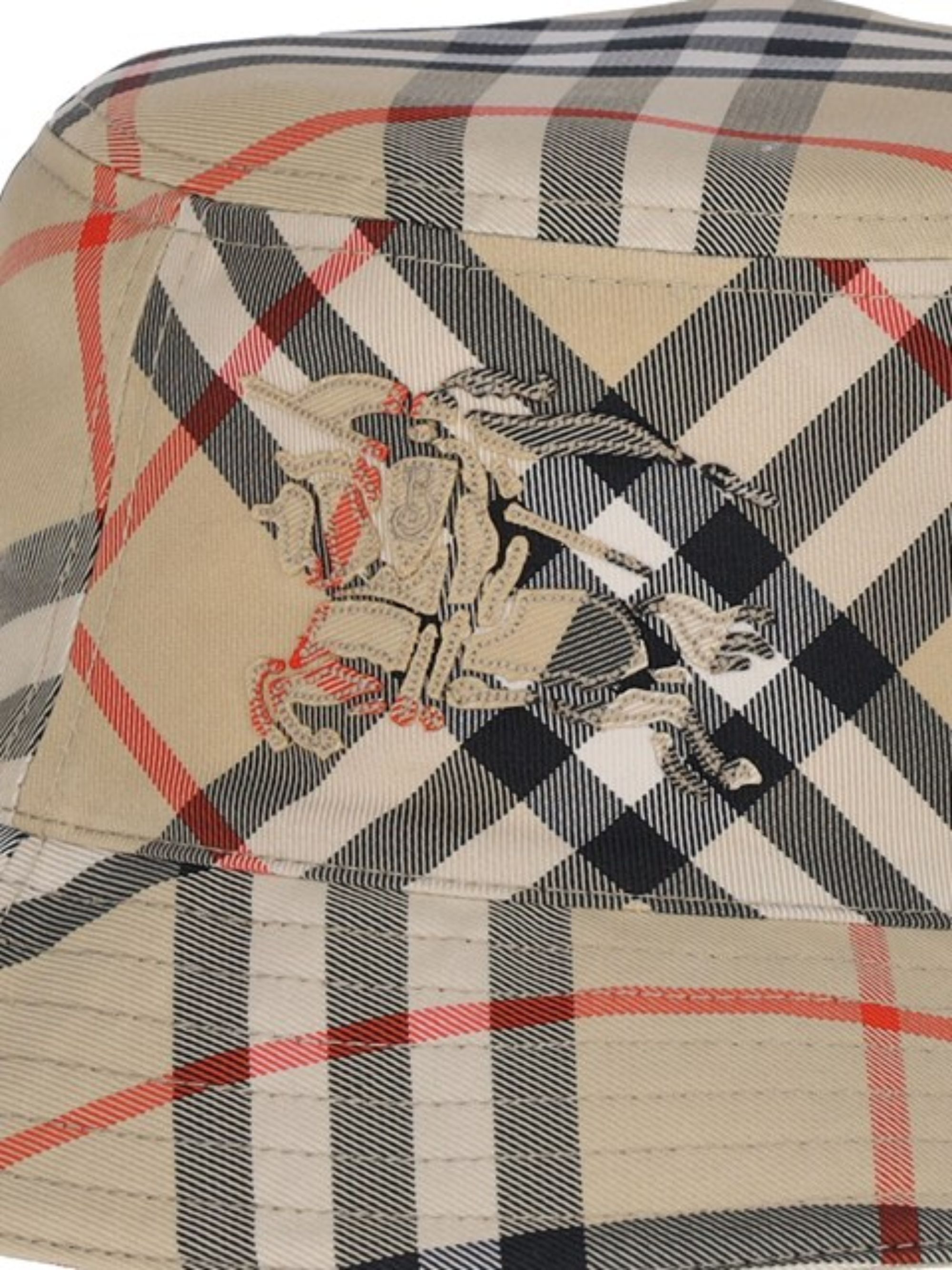EKD hat by BURBERRY in beige cotton, featuring an all-over check motif and tone-on-tone embroidered logo.
