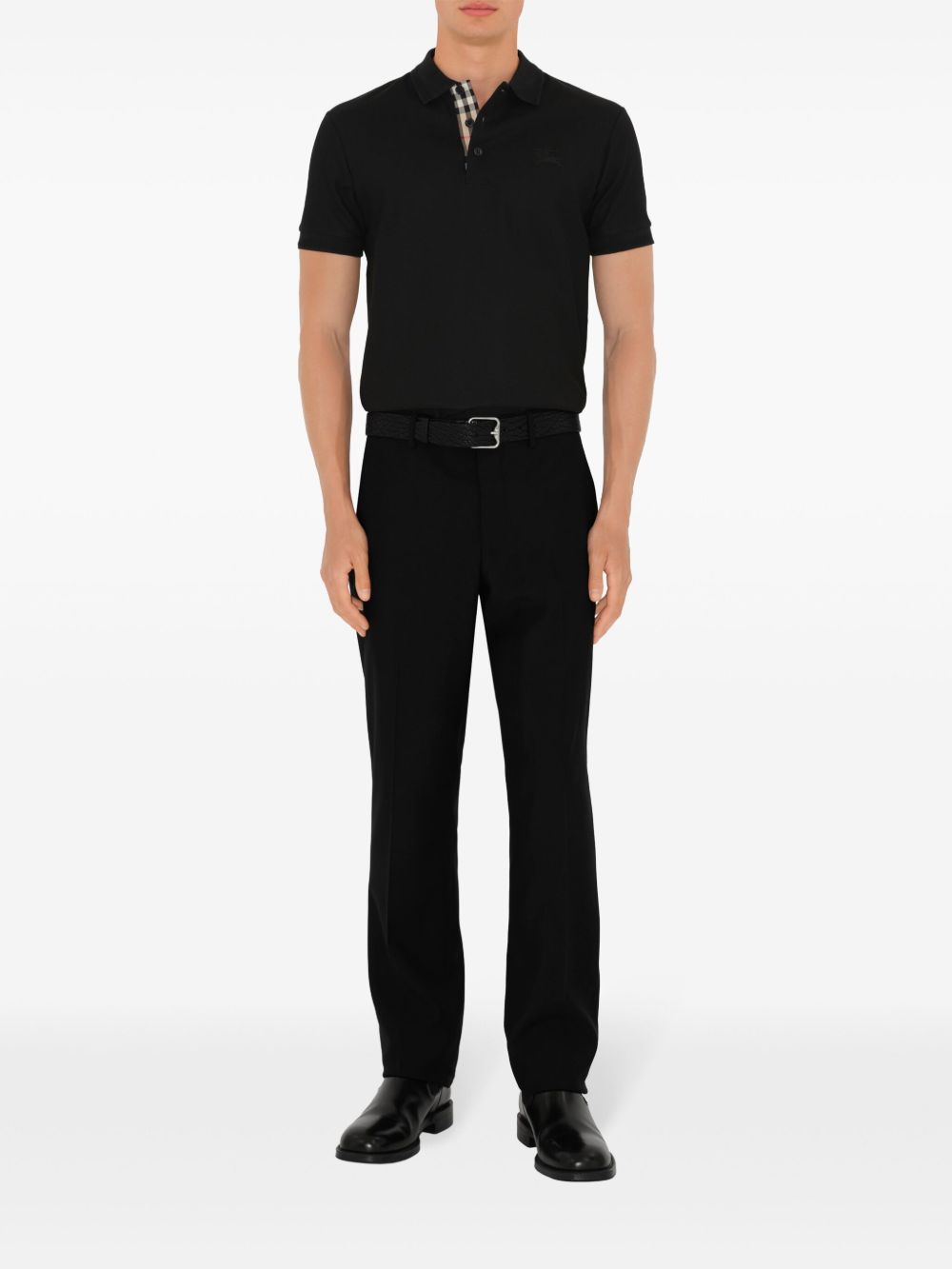 Black EKD polo shirt by BURBERRY in cotton, featuring a classic collar, button fastening, check buttonhole, tone-on-tone Equestrian Knight Design embroidered on the chest, short sleeves and two side slits on the hem.