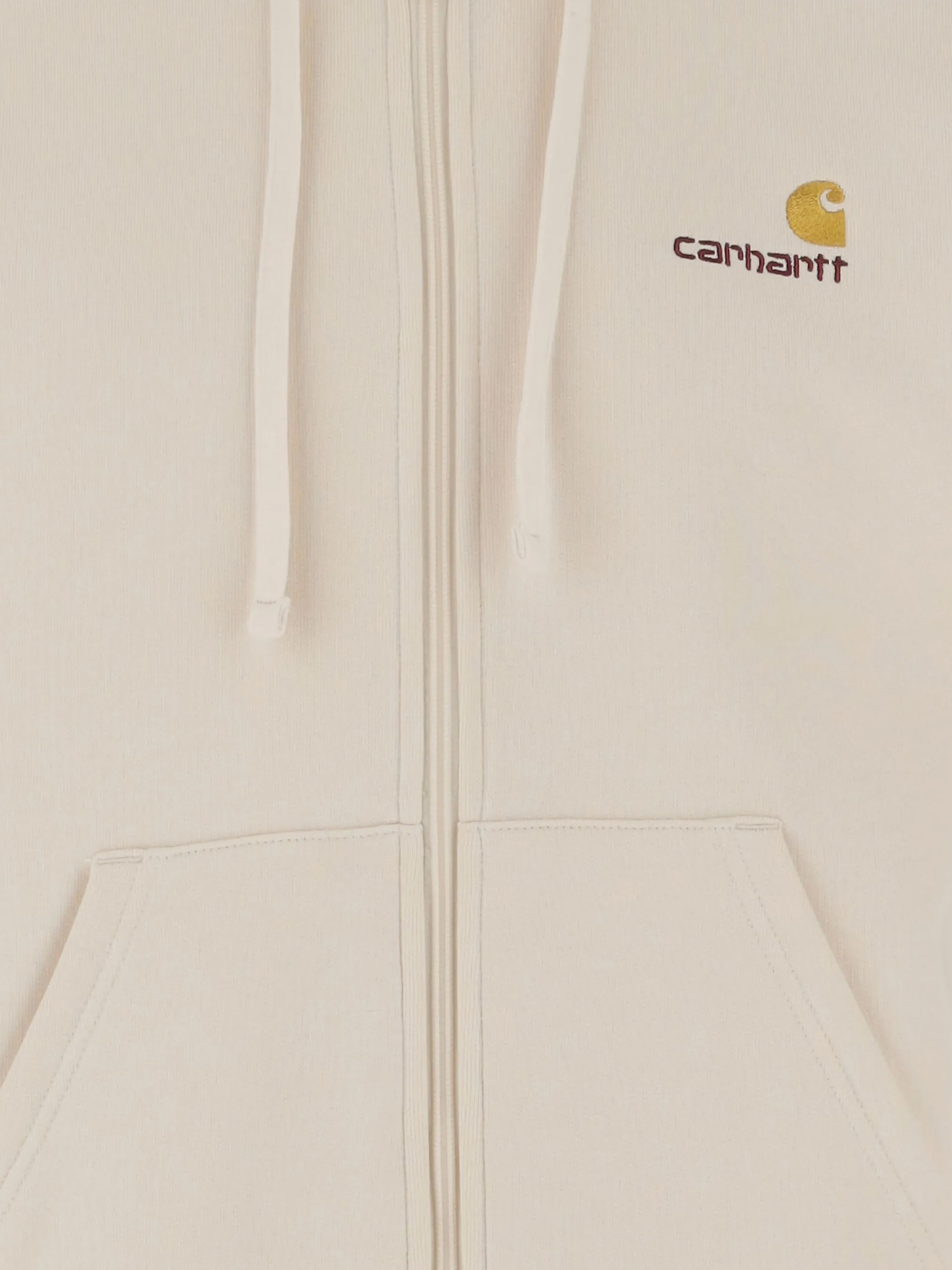 American Script sweatshirt by CARHARTT WIP in beige cotton with drawstring hood, pockets, elasticated hem and cuffs and zip fastening.