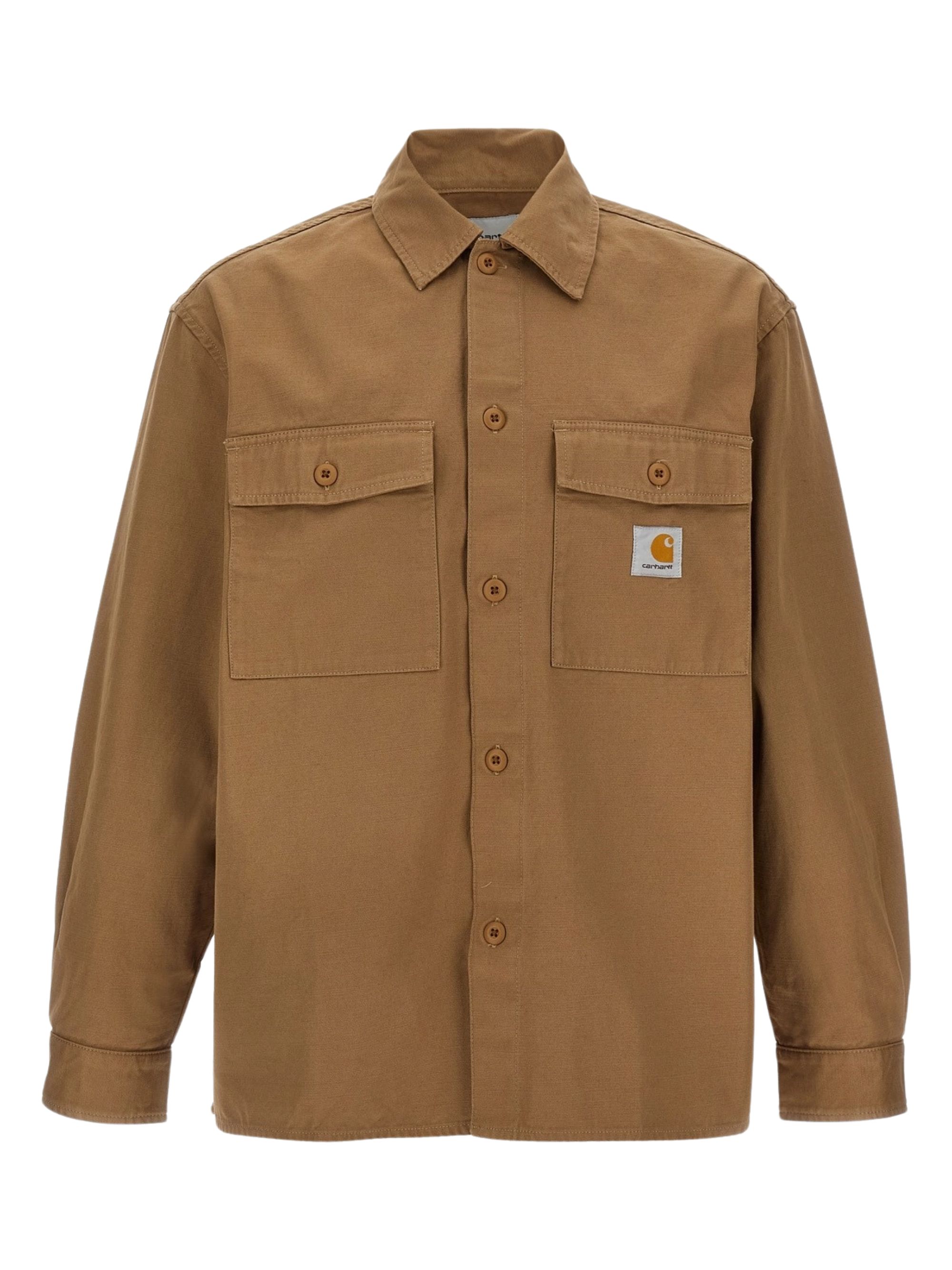 Kelly shirt by CARHARTT WIP in beige cotton twill, featuring front button fastening, pockets with logo patch, long sleeves with cuffs, dropped shoulders and side slits.