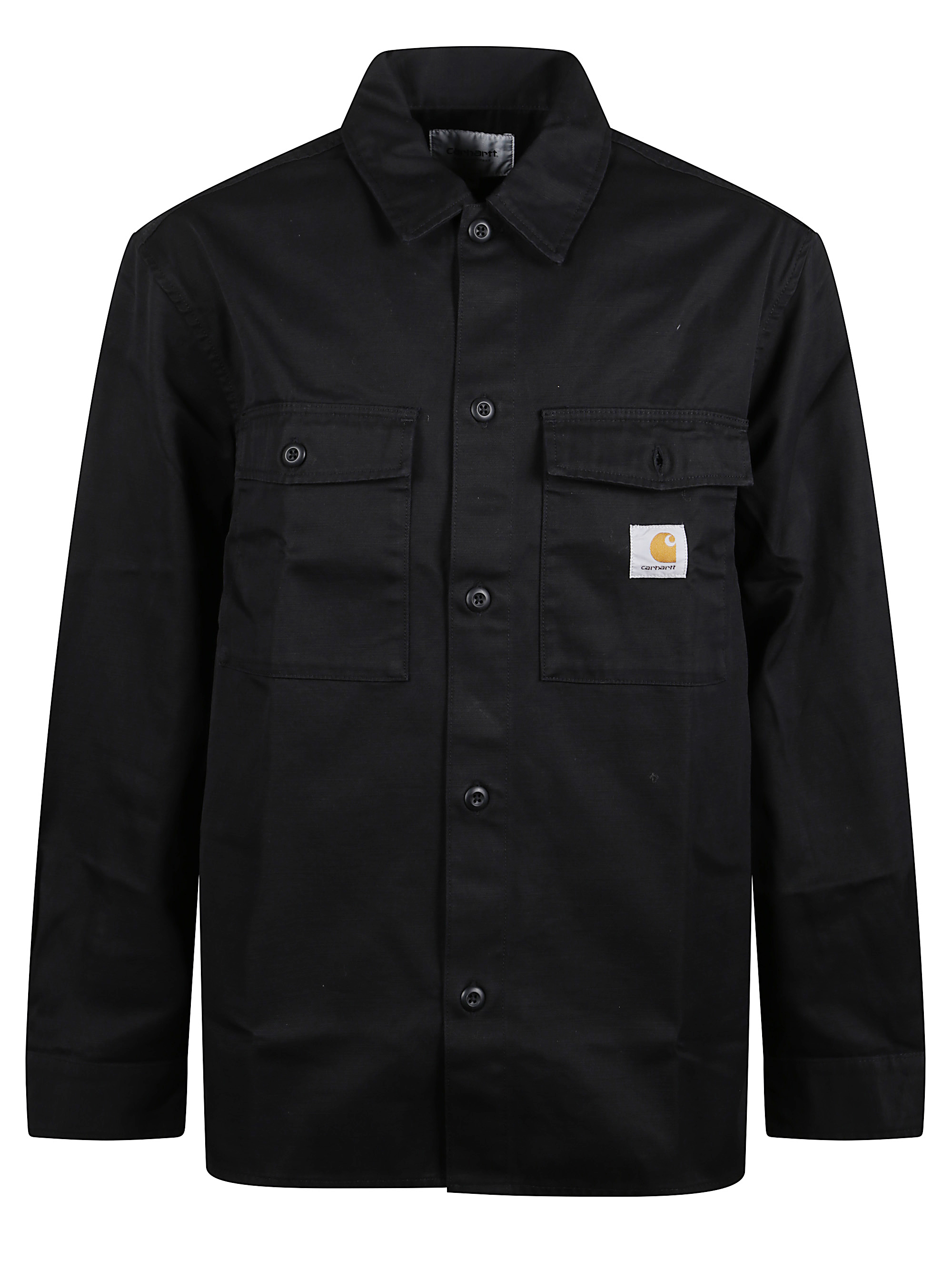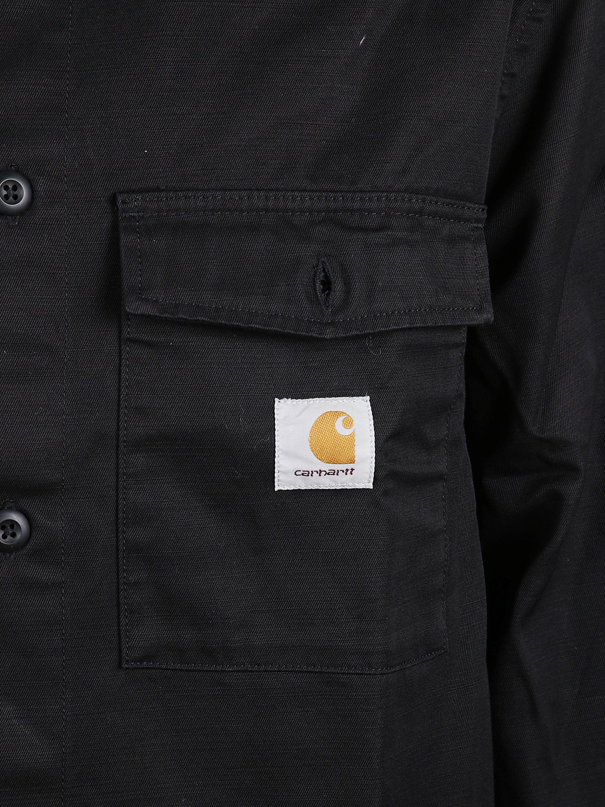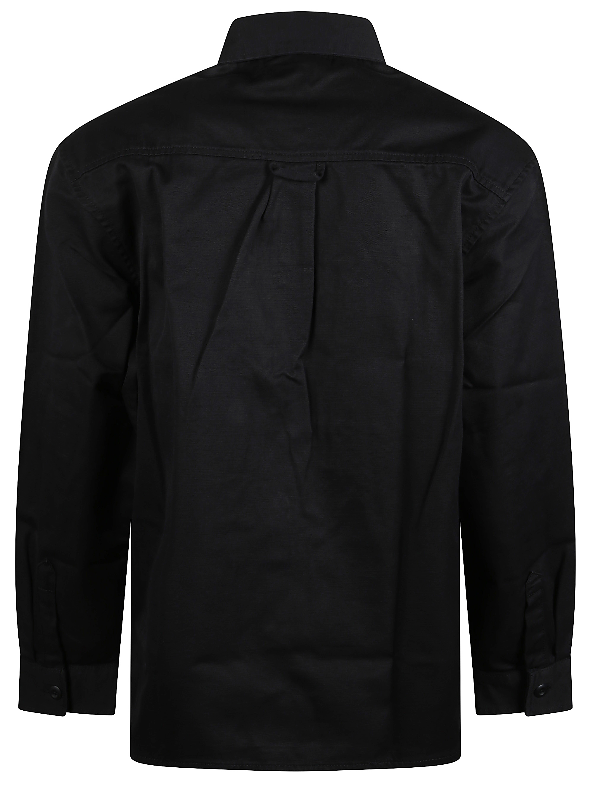 CARHARTT WIP black cotton Kelly shirt with collar, pockets, logo patch, and button closure.
