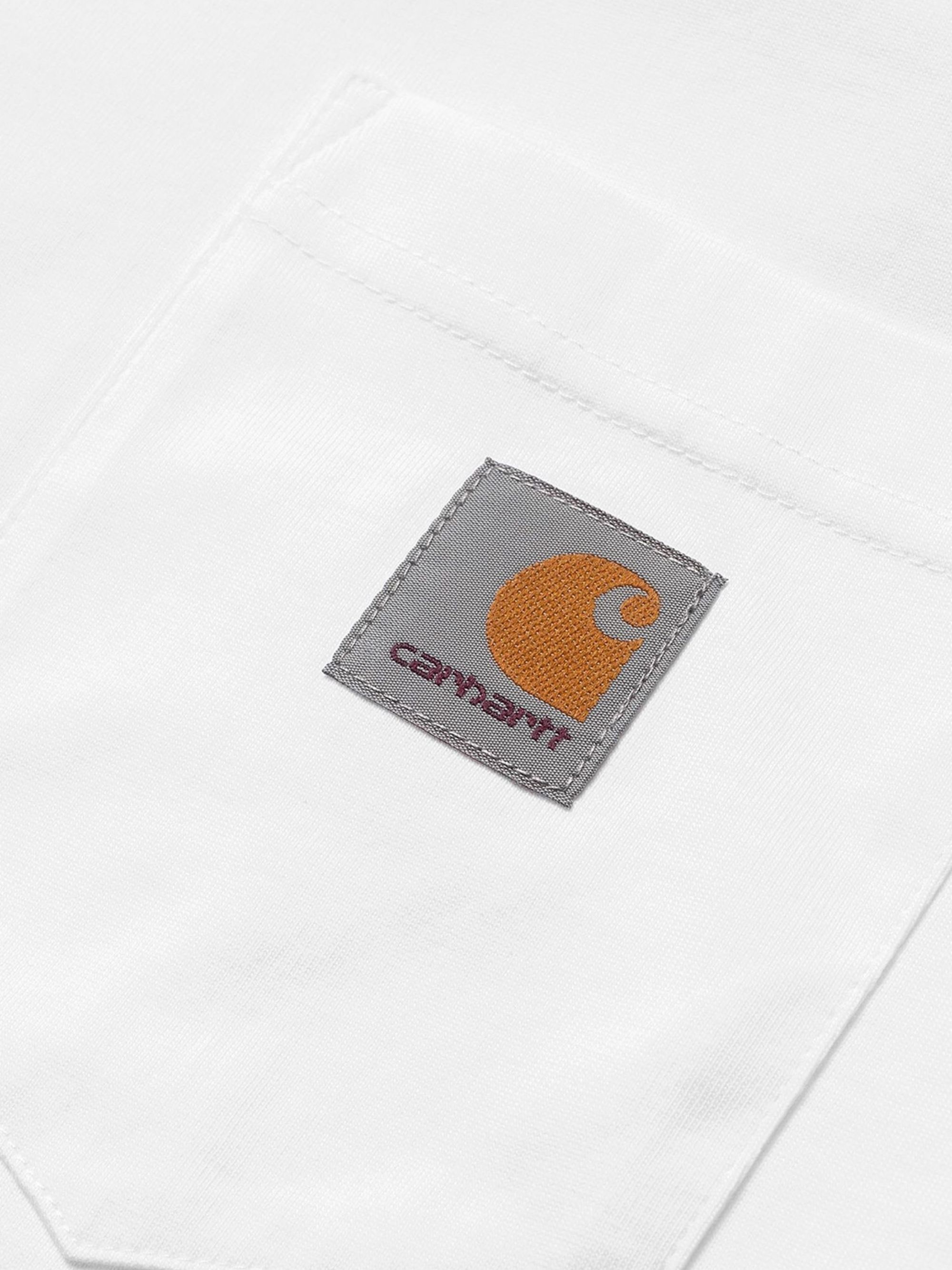 S/S Pocket T-shirt by CARHARTT WIP in white cotton, featuring a regular fit, crew neck and chest pocket with logo.