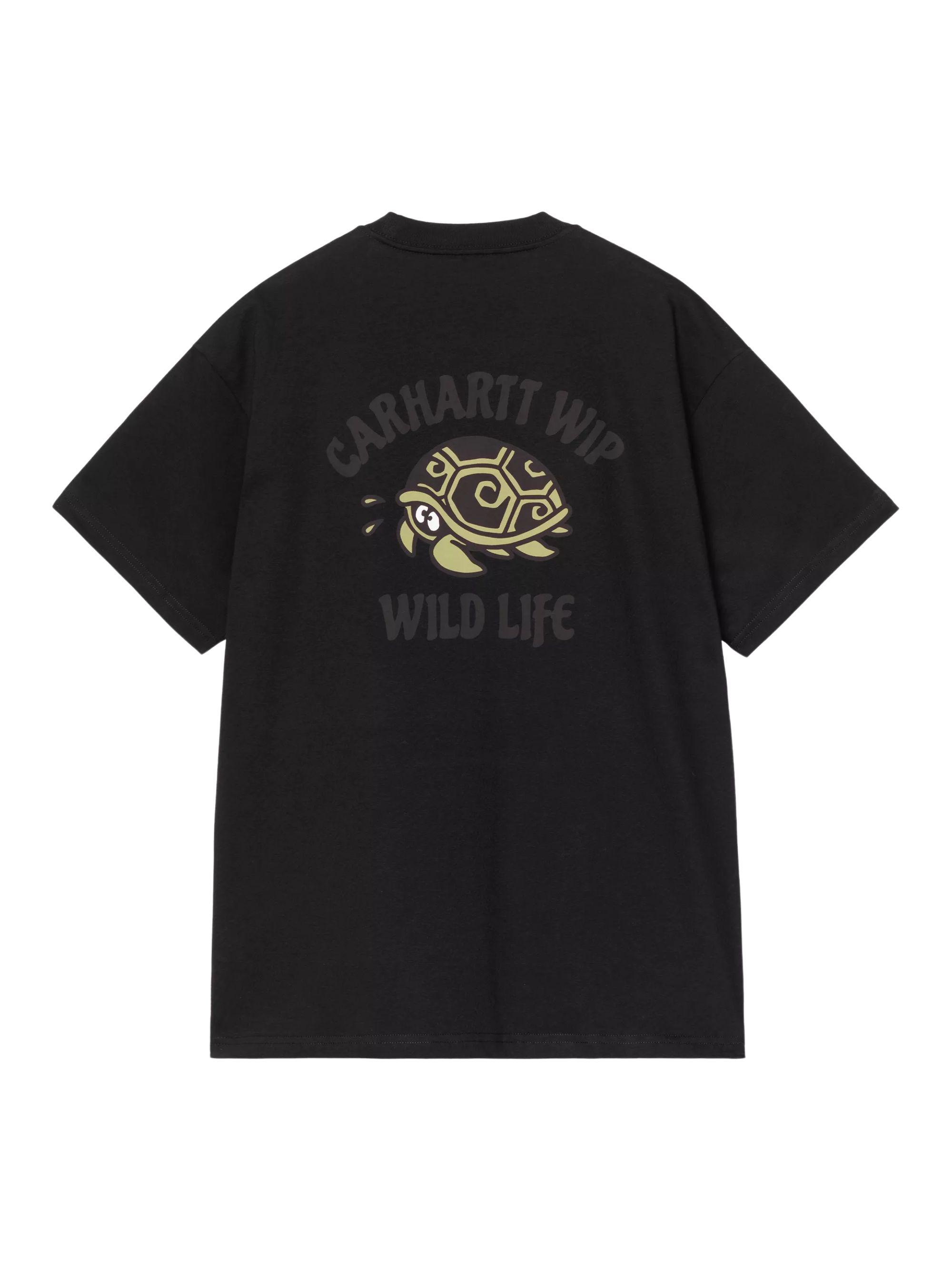 Wild Life T-shirt by CARHARTT WIP in black cotton, featuring a crew neck, short sleeves and a graphic print on the front and back.