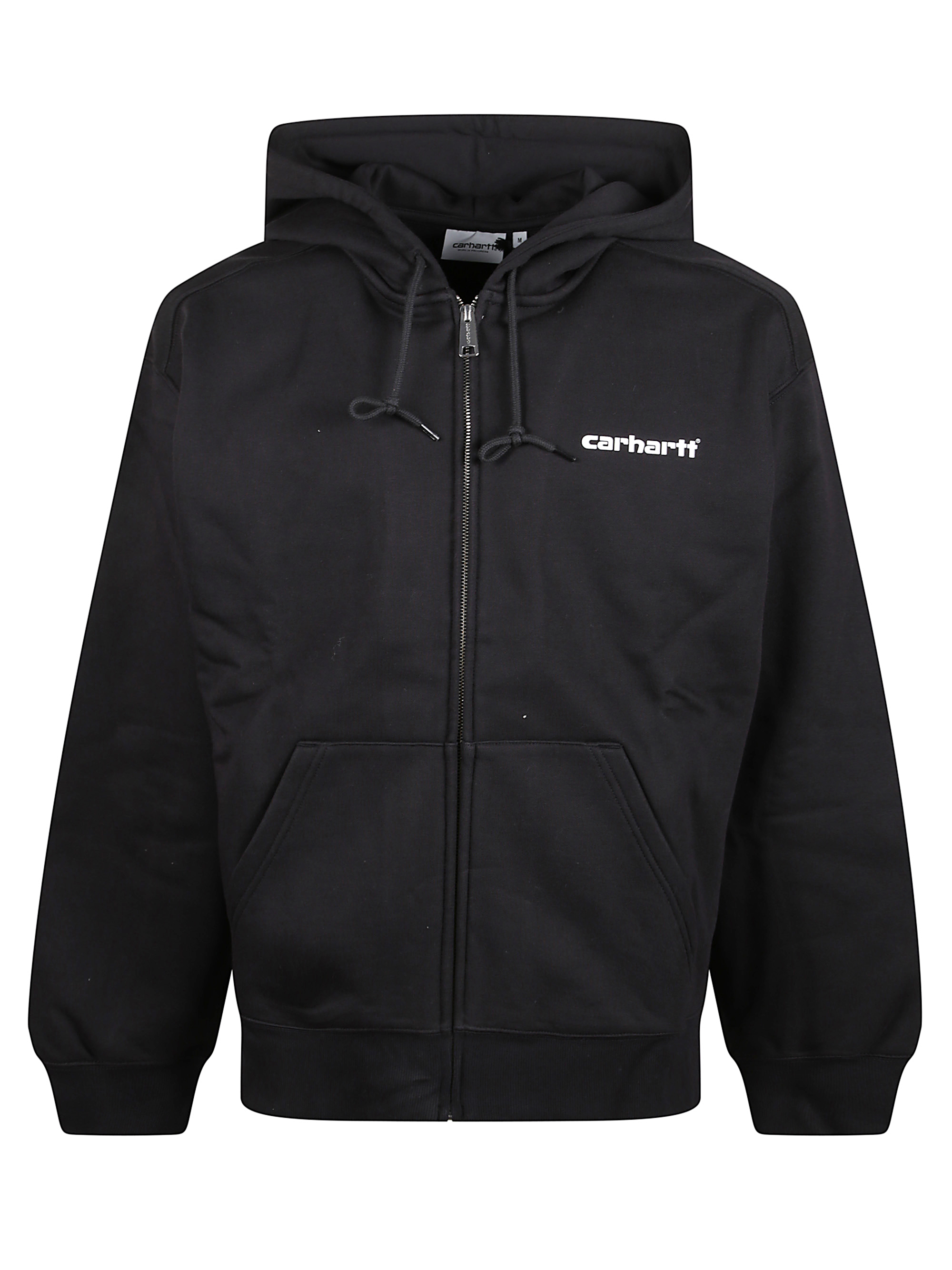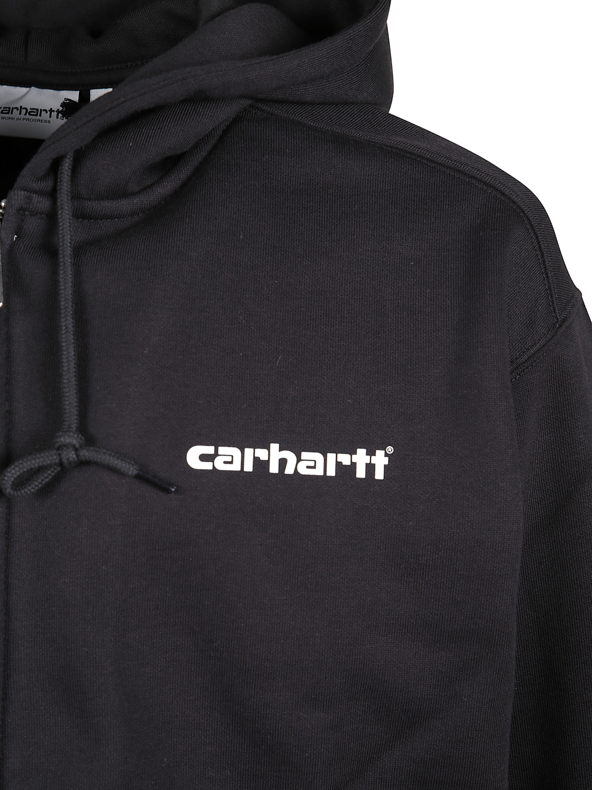Black CARHARTT WIP cotton zip-up sweatshirt with a hood, logo, and ribbed hem and cuffs.