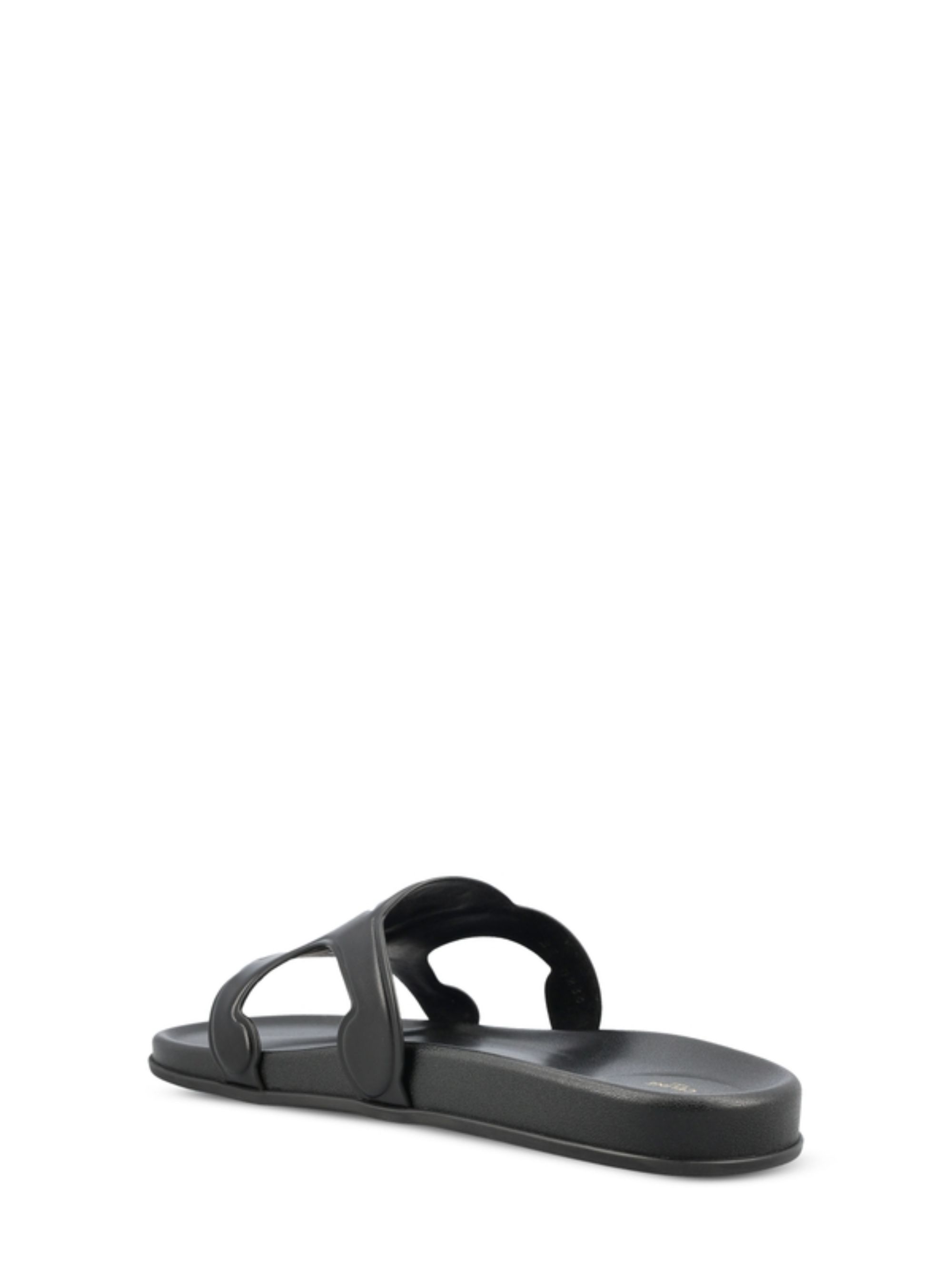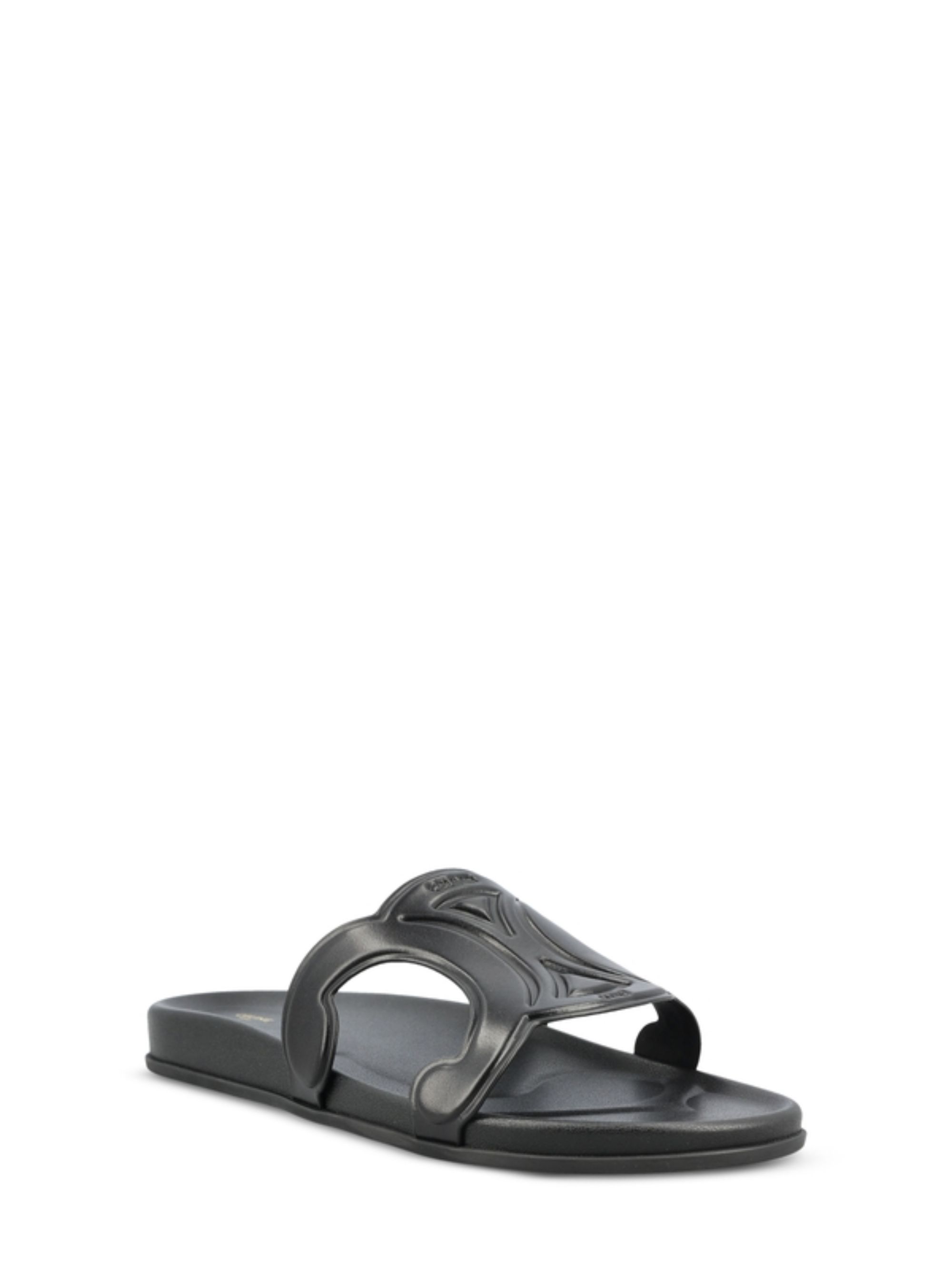 Black CELINE leather slipper with cut-out logo band and rubber sole.