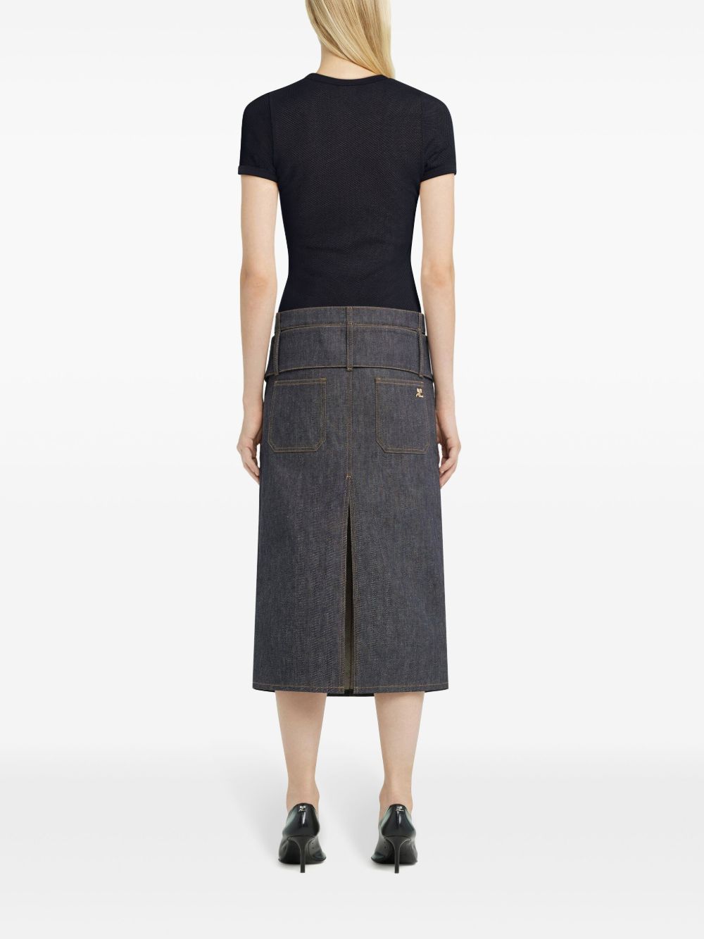 Mesh T-shirt by COURRÈGES in black cotton with a crew neck, short sleeves and an embroidered logo on the front.