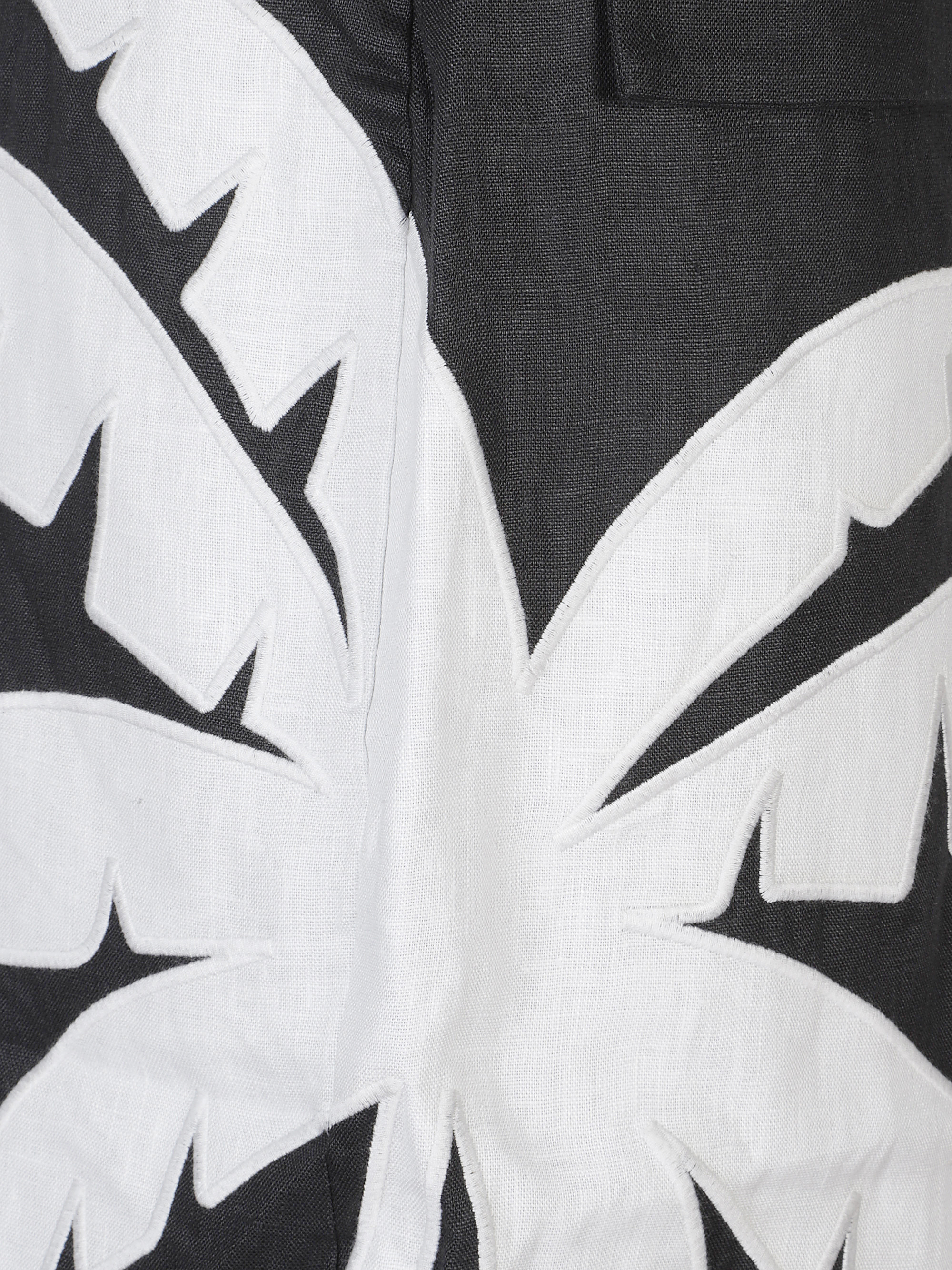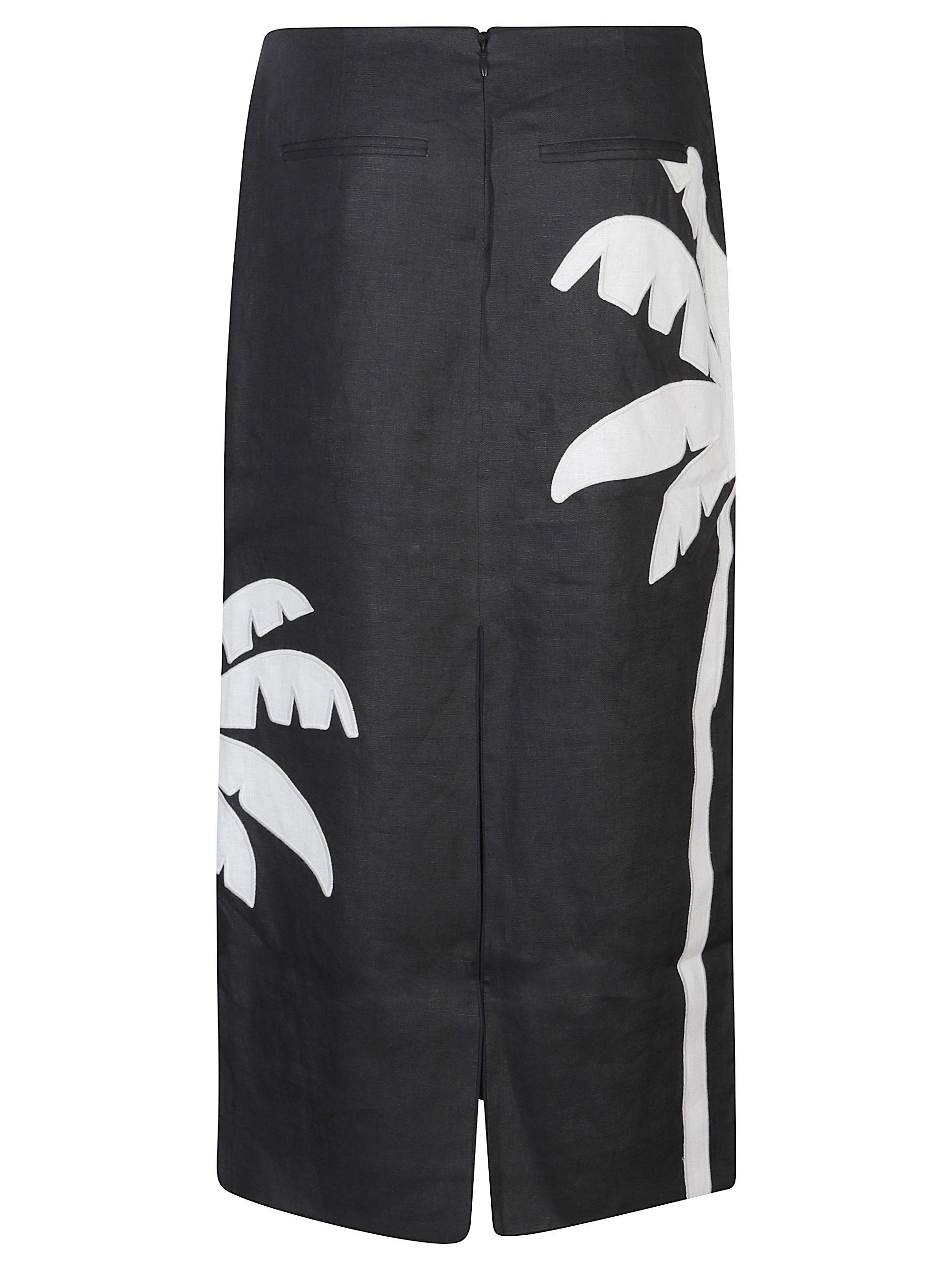 Palm Tree skirt by FARM RIO in black linen, featuring patch pockets and an invisible zip on the back.