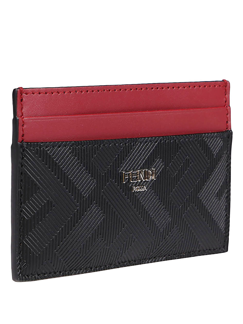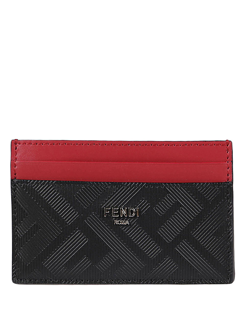 Leather logo card holder by FENDI featuring FF logo texture and logo on the front.