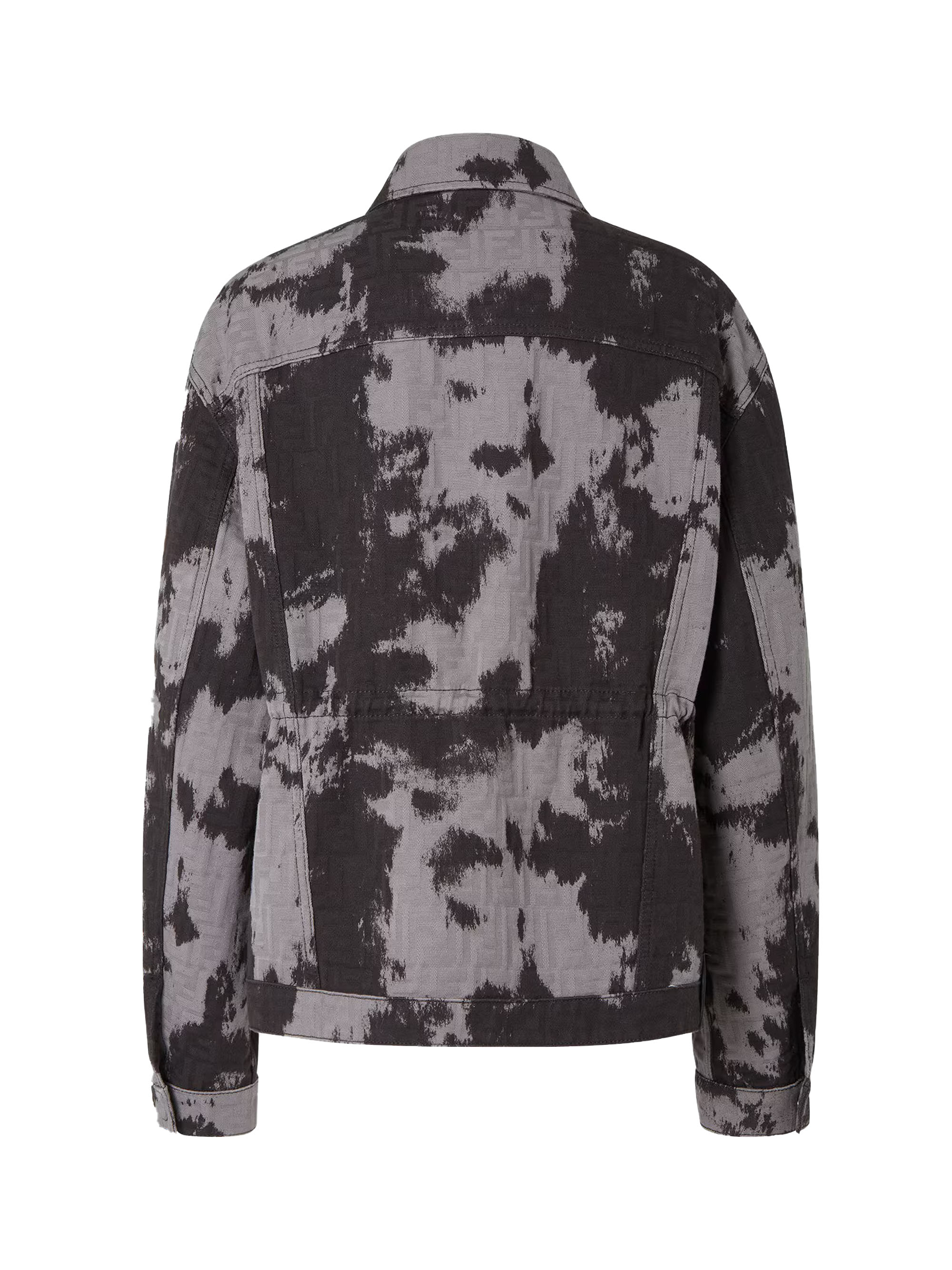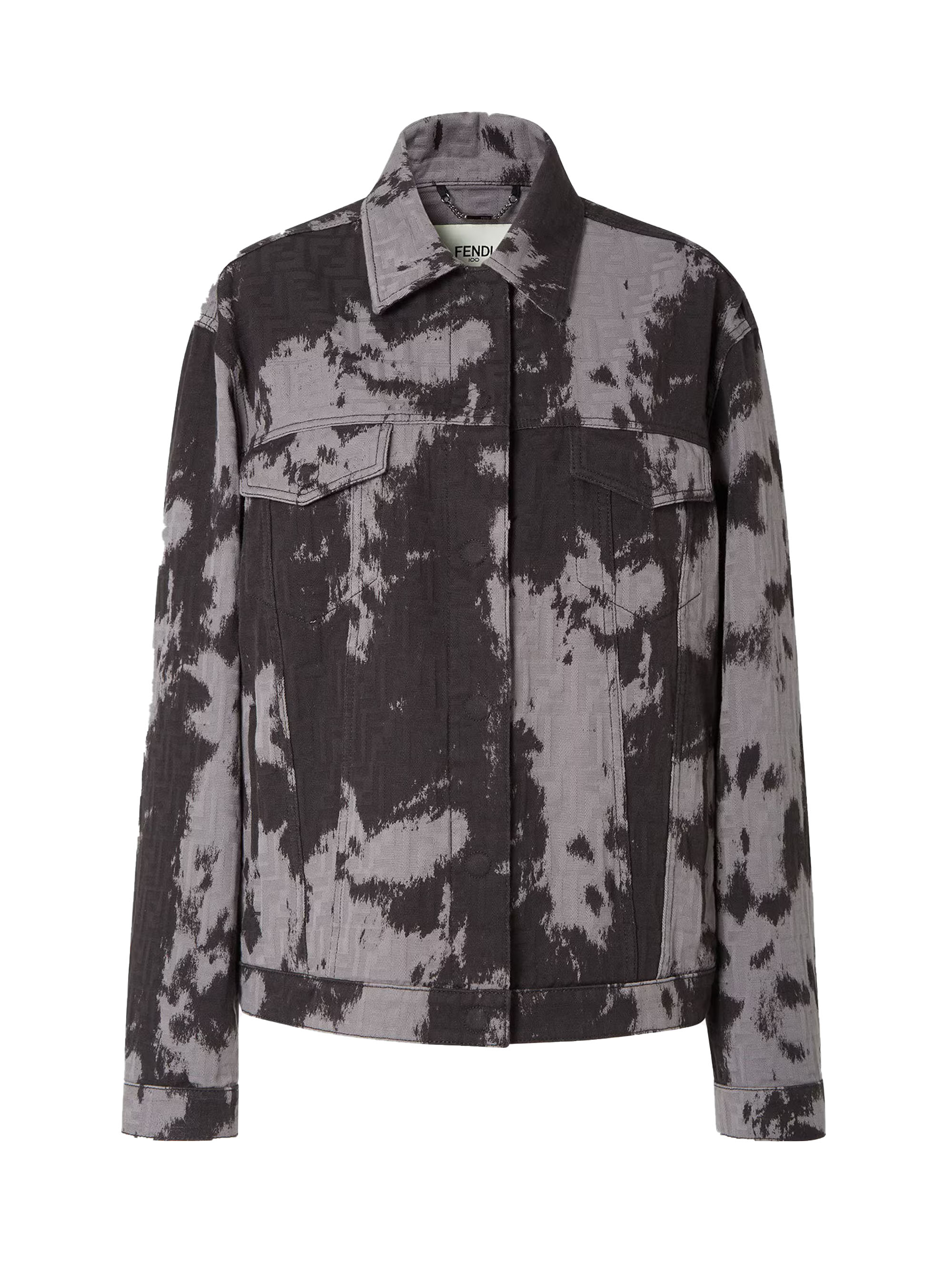 FENDI multicolor FF animalier denim jacket with animalier motif, featuring a shirt collar, flap and button pockets on the chest, side welt pockets, button fastening and a Fendi Roma leather label on the back.