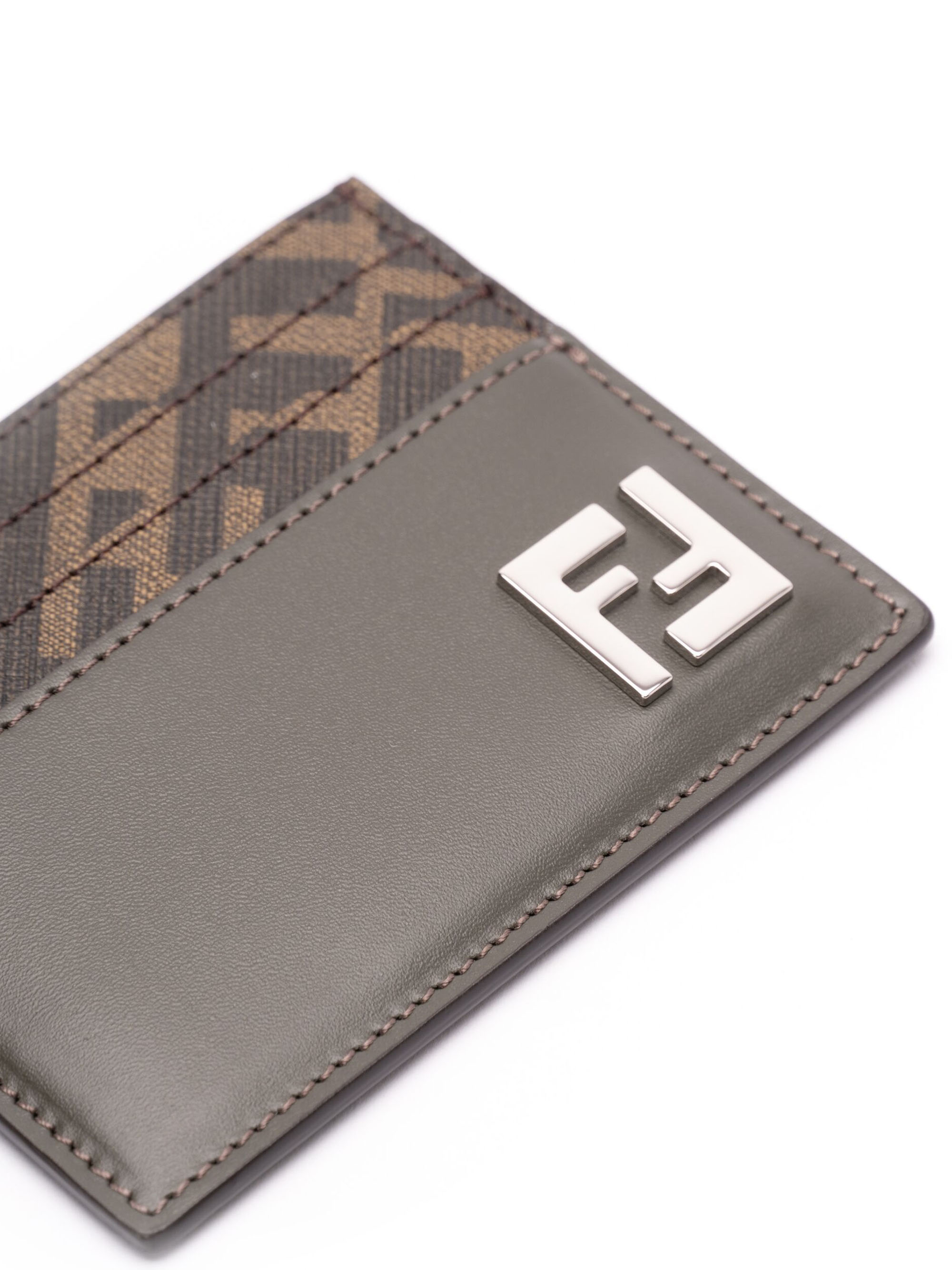 FENDI olive green FF leather card holder with card slots, stitched hem and logo plaque.