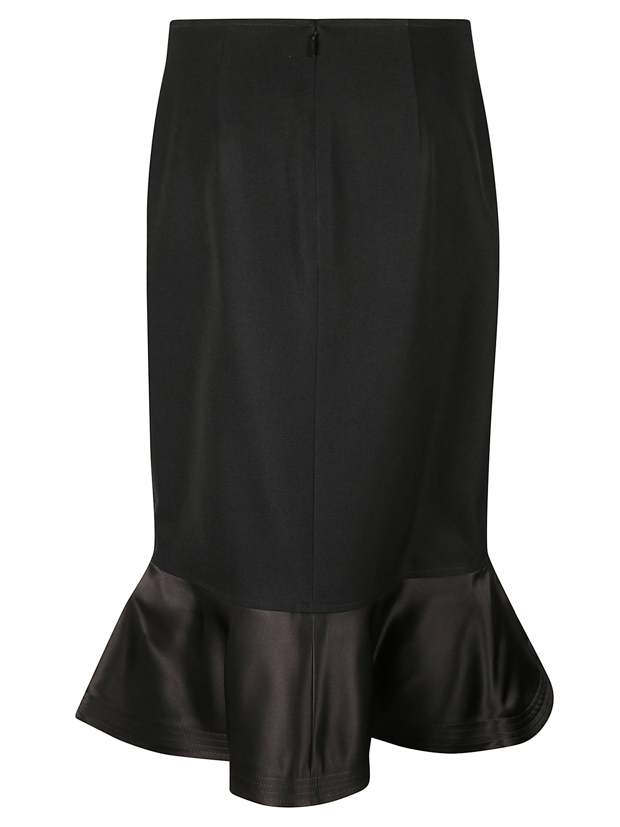 Grain De Poudre midi skirt by FENDI in black wool, featuring a high waist, a peplum silhouette that is fitted at the waist and flared at the hem and a zip fastening.