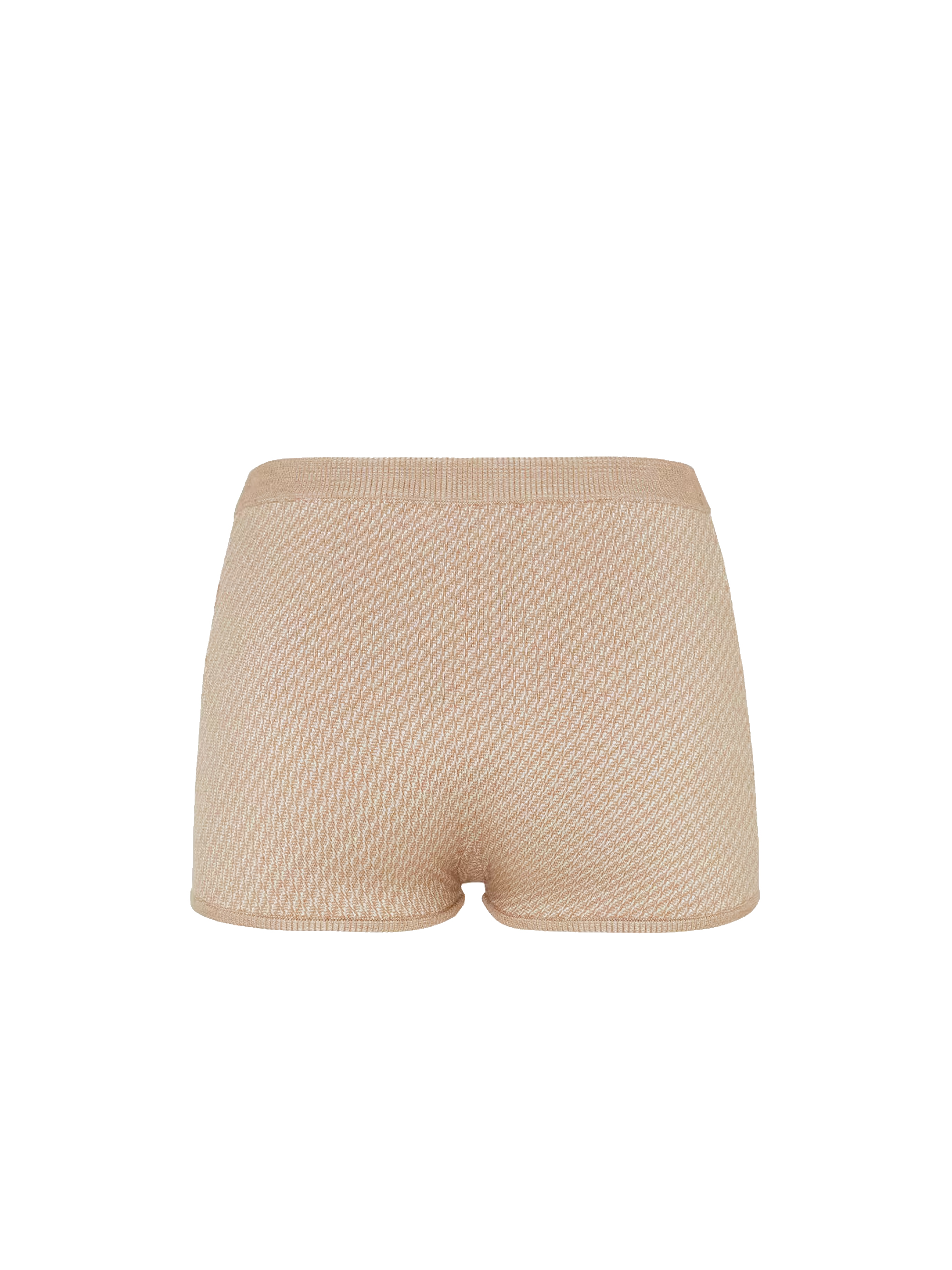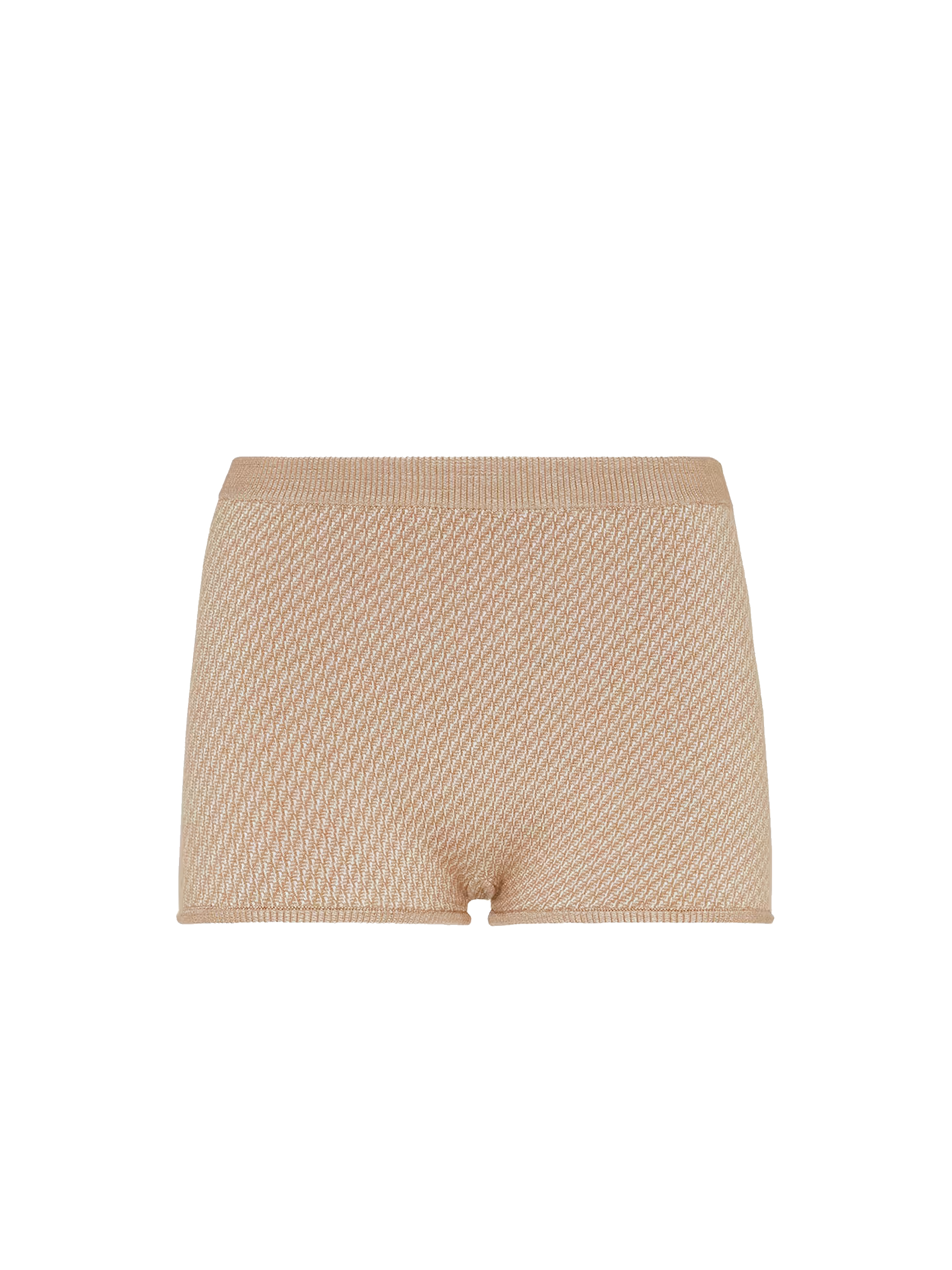 FENDI light brown knitted shorts in a silk and wool blend with an elasticated waist and ribbed trim.
