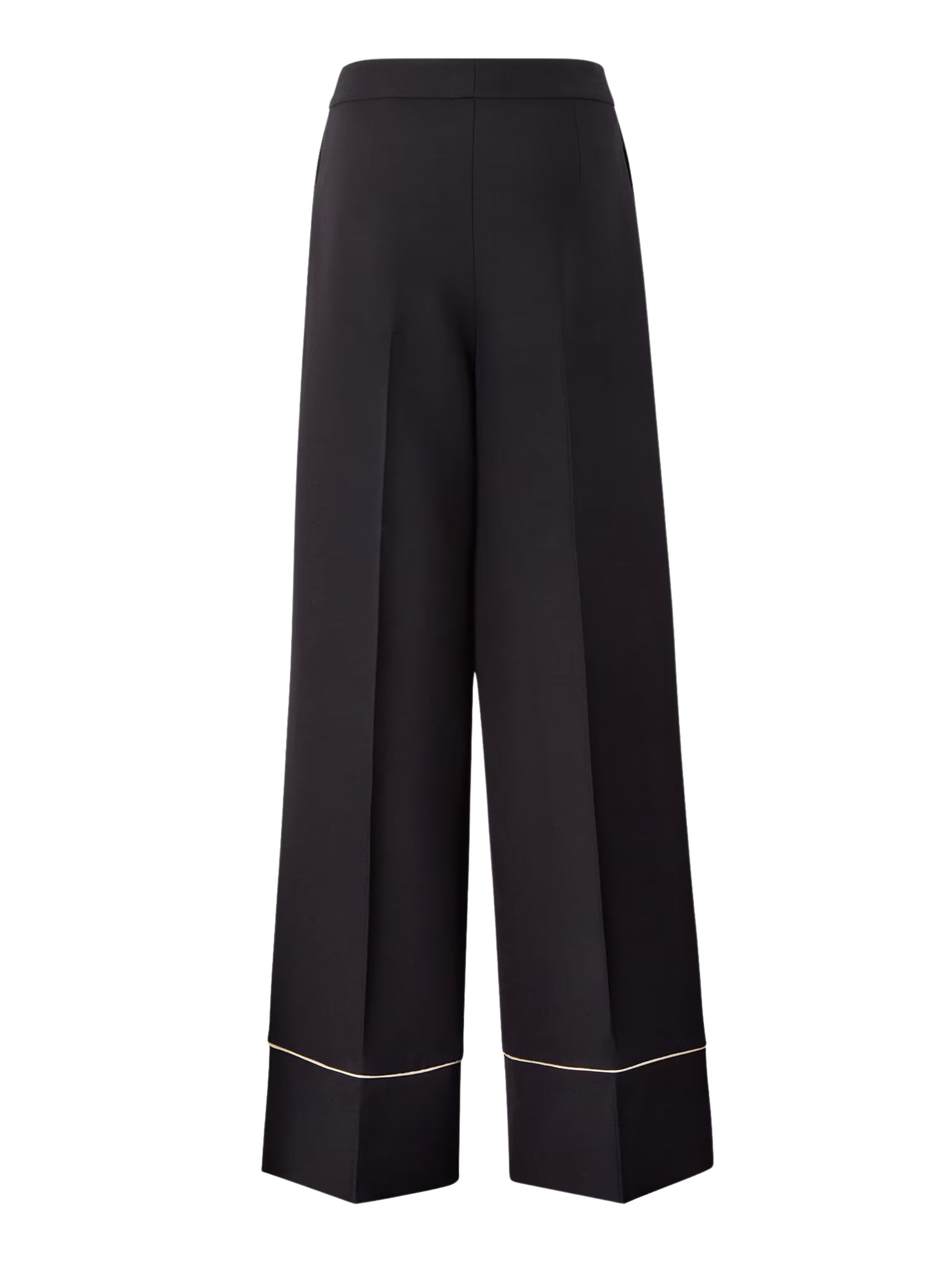 Black FENDI wool and silk pyjama trousers featuring a high waist with double pleats on the front, side pockets and doubled hem, zip fastening and contrasting piping.