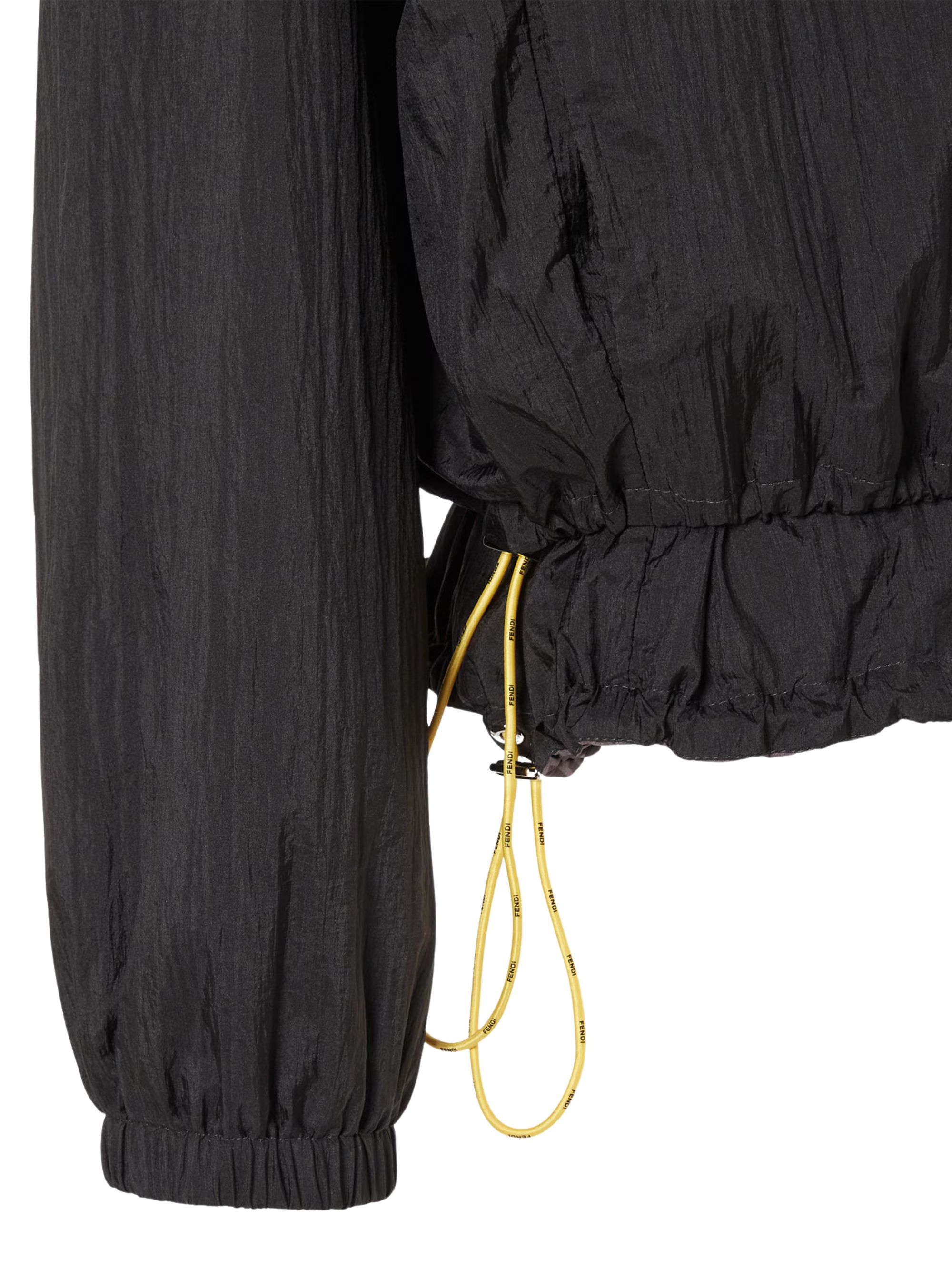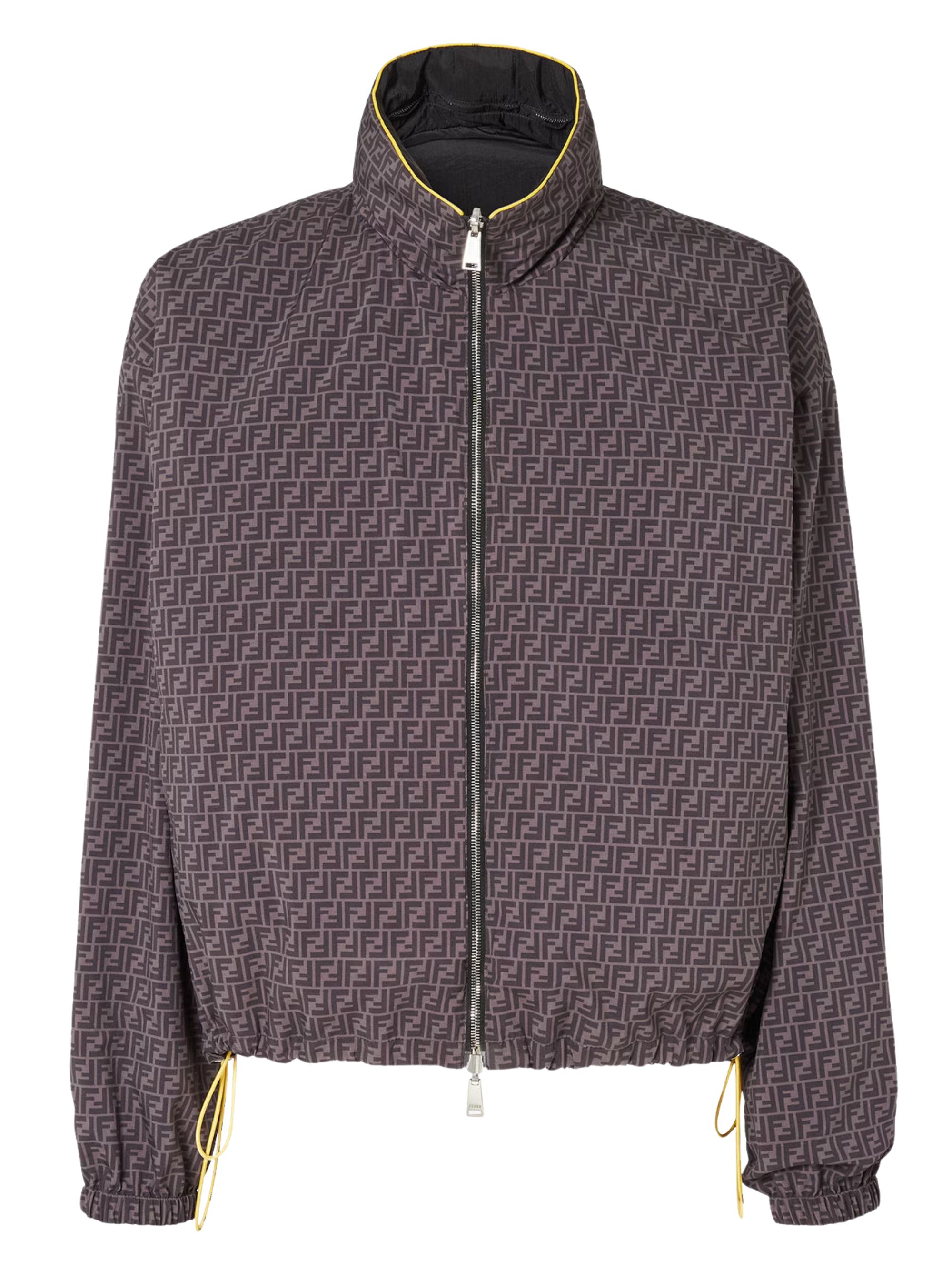 Reversible black nylon windbreaker by FENDI, featuring a zip fastening, high collar, side pockets and elastic cuffs.