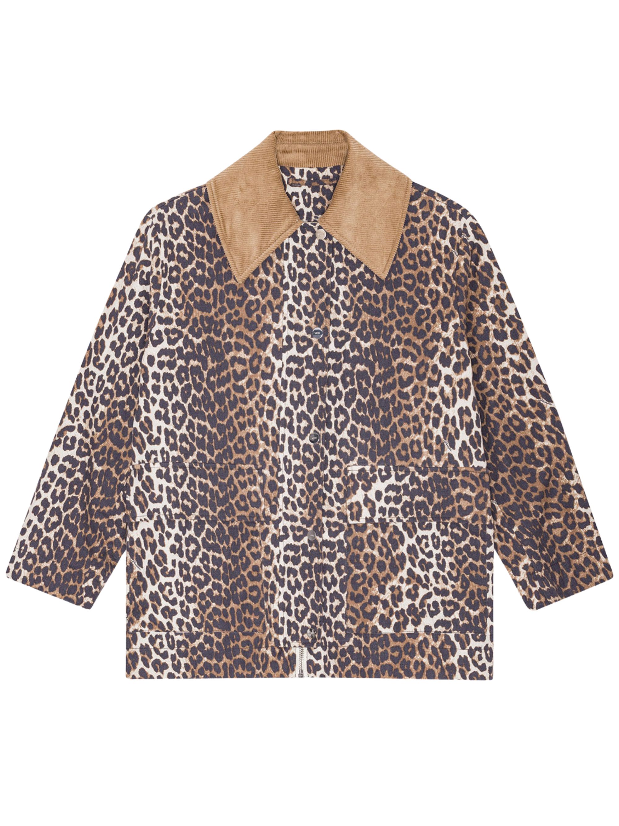GANNI multicolor leopard jacket in cotton with animal print, featuring a front button fastening, wide peak lapels and two front pockets.