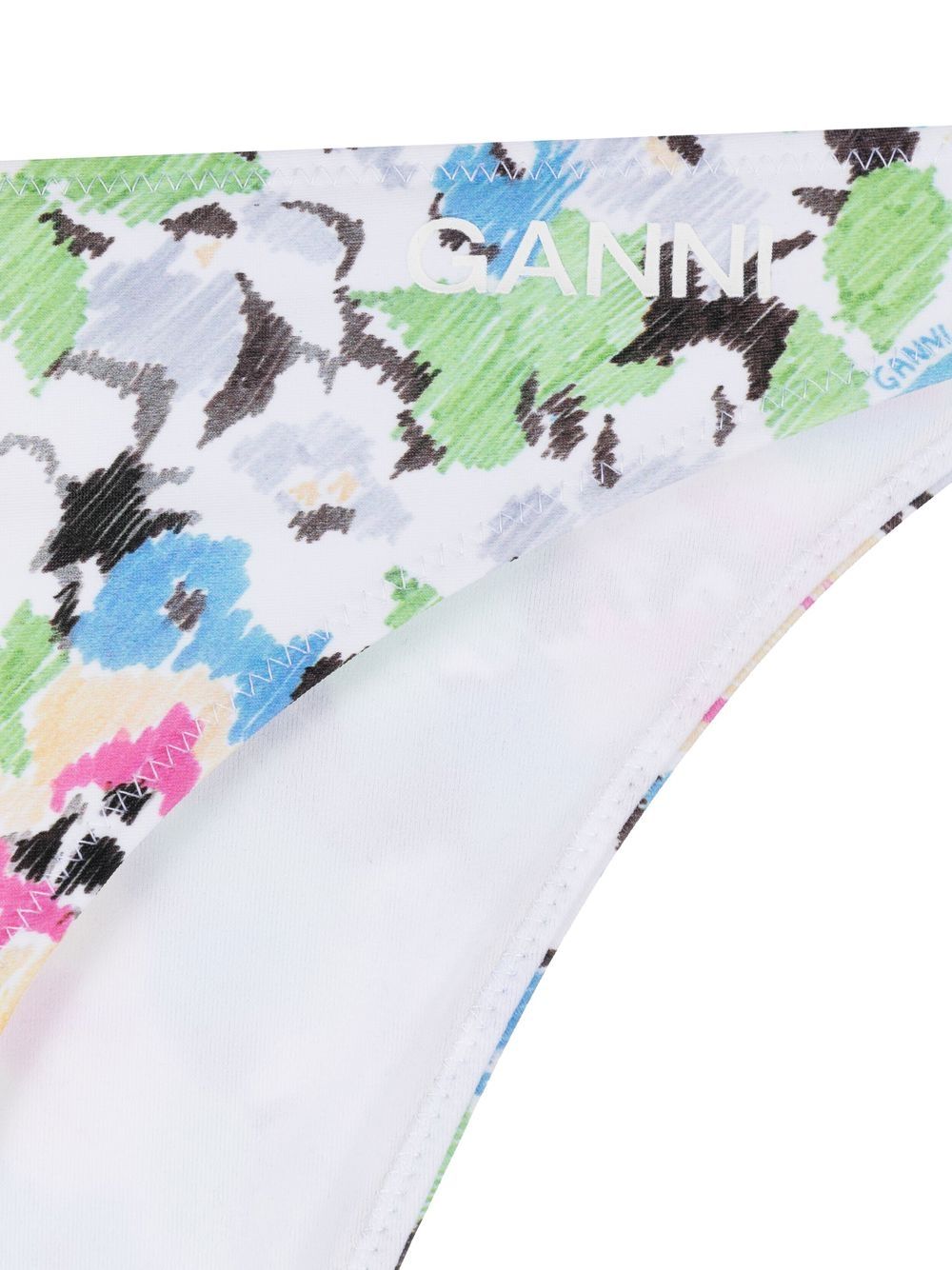 Multicolor swim briefs by GANNI characterized by floral print and logo.