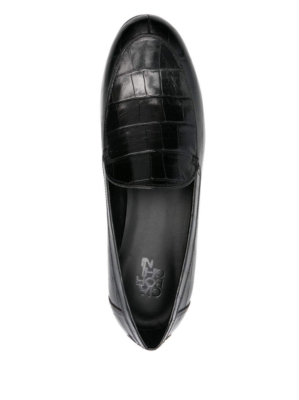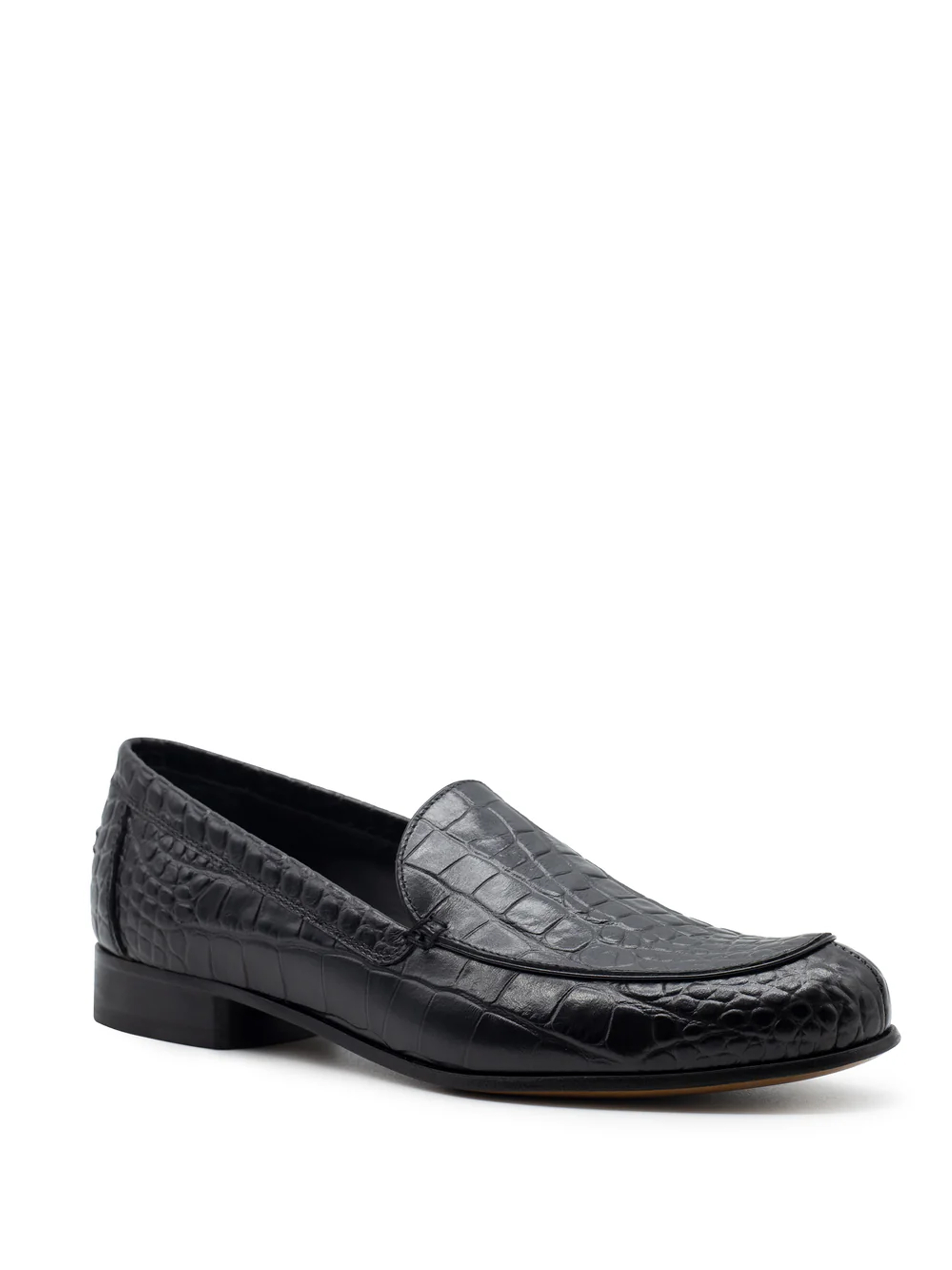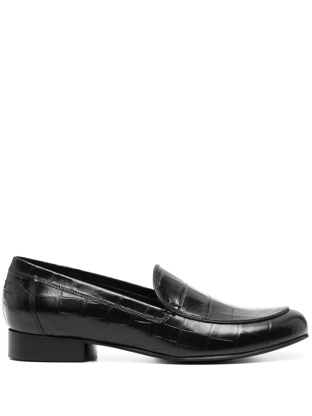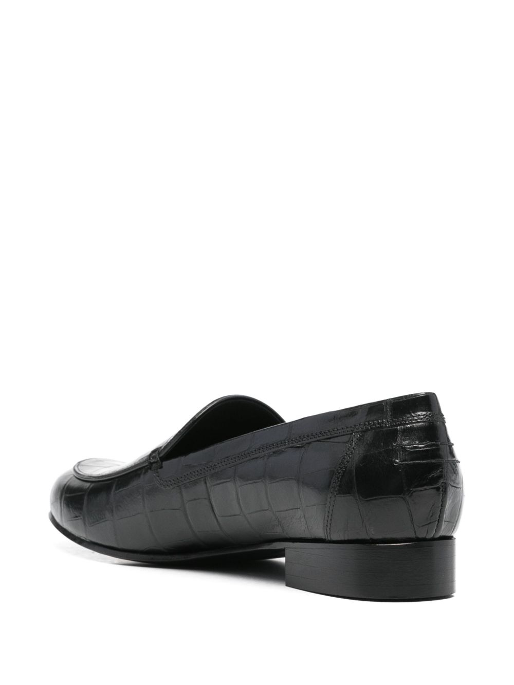 Money moccasin by HELSA X GIA BORGHINI in black crocodile-print leather, lightly padded sole with low heel.