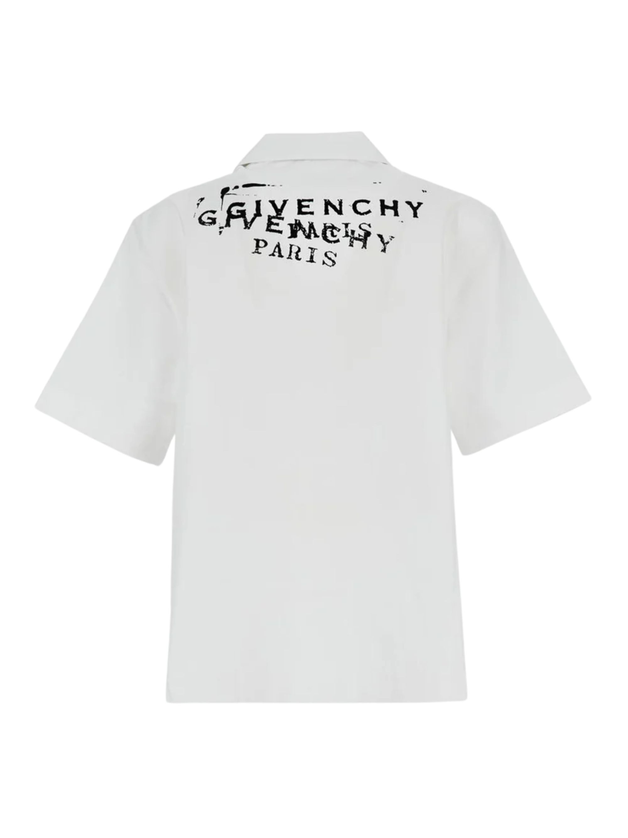 GIVENCHY white cotton Bowling shirt featuring a front button fastening and a print on the chest.