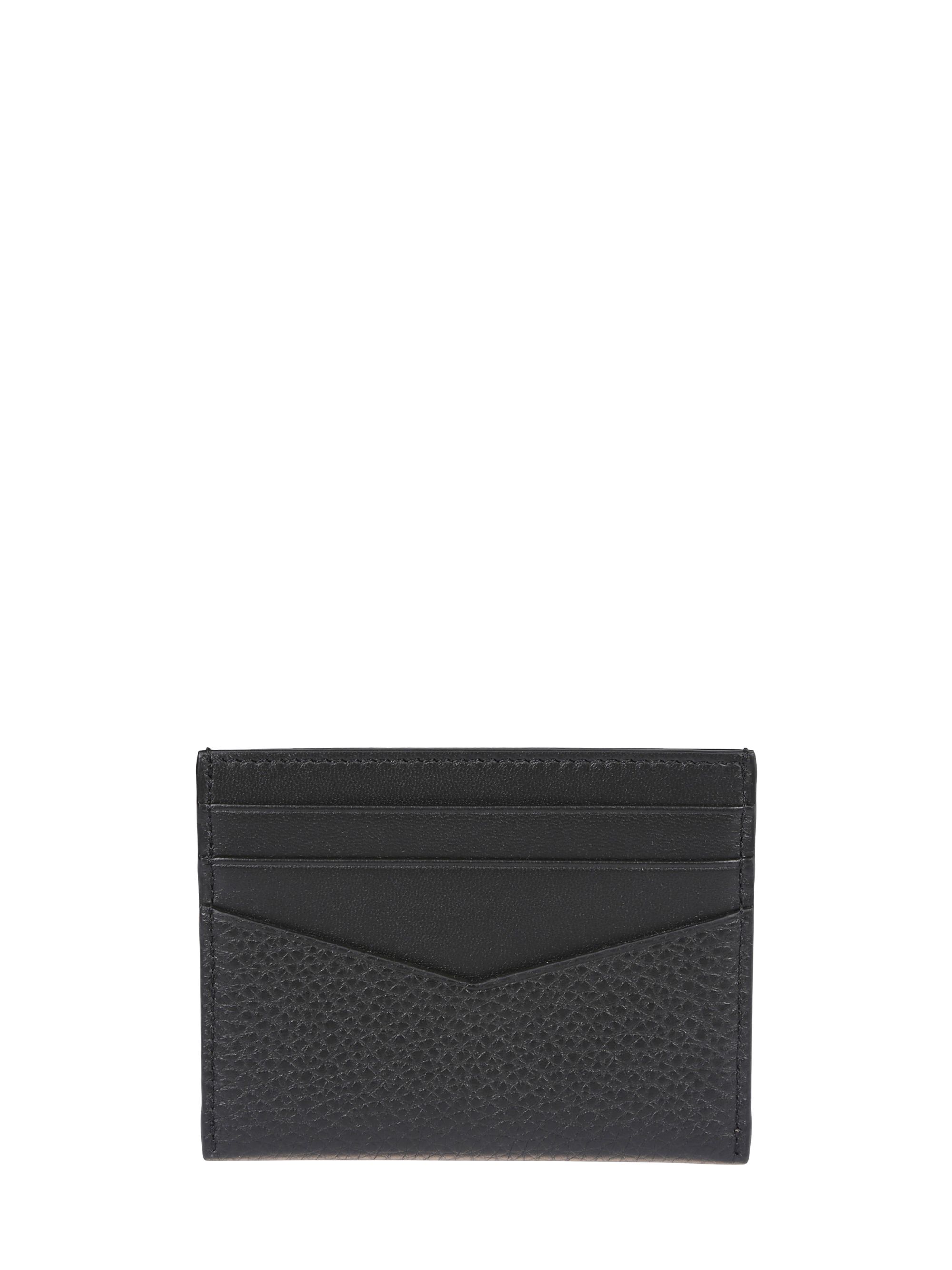 GIVENCHY logo card holder in black grained leather, featuring a silver-tone logo and card slots.