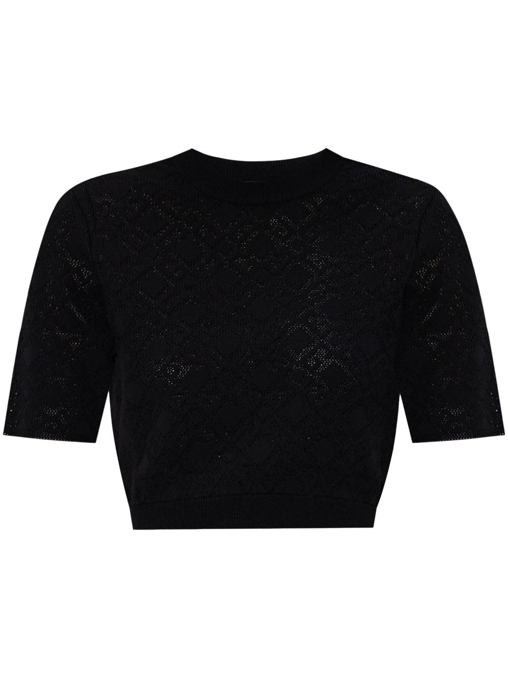 GIVENCHY black crop T-shirt with a crew neck, openwork details and short sleeves.