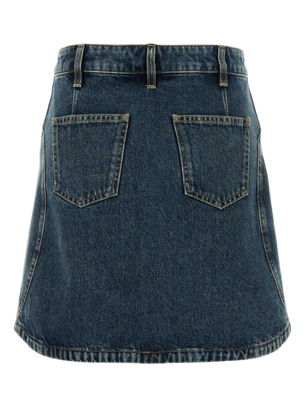 GIVENCHY blue cotton denim mini skirt with a front gusset pocket, back patch pockets and a front button and zip fastening.