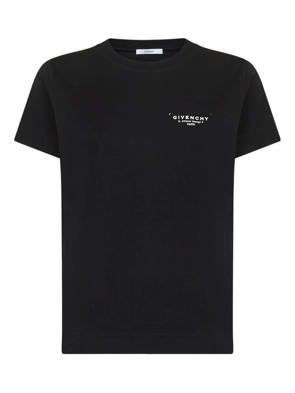 T-shirt di GIVENCHY nera in cotone con girocollo a coste e stampa con logo.